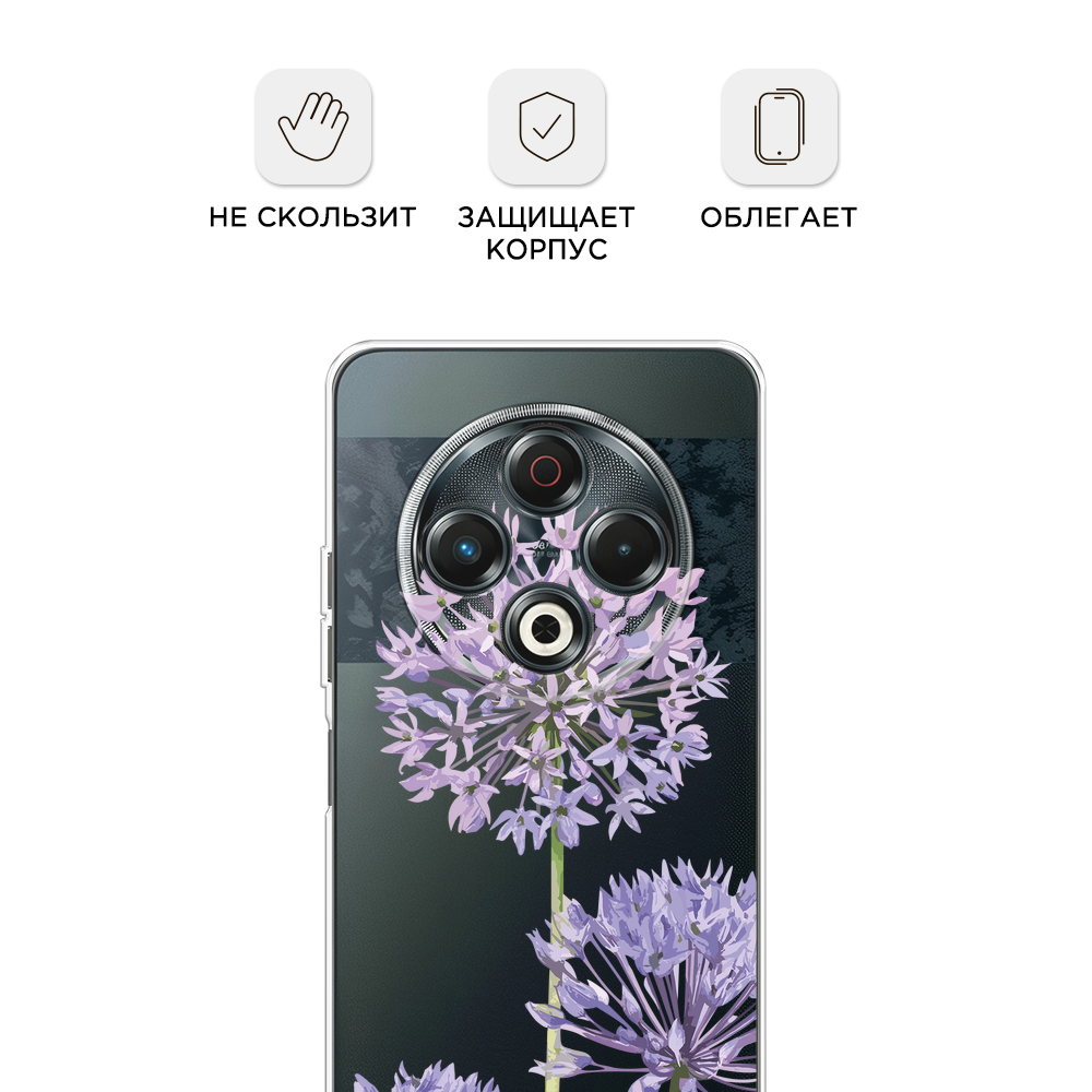 10 цен на Чехол на Tecno Spark 30 / Текно Спарк 30 с принтом Сиреневые цветы акварель, прозрачный