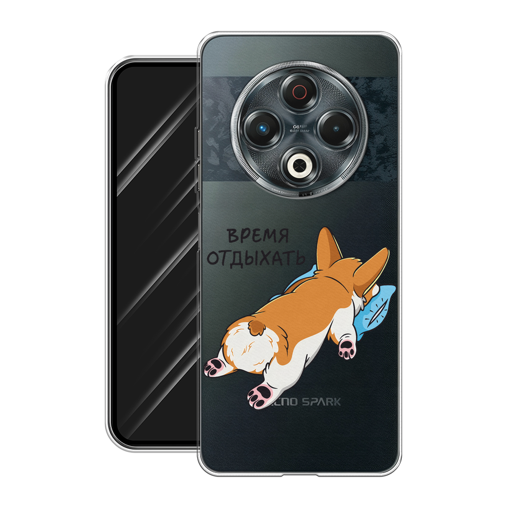 Чехол на Tecno Spark 30 / Текно Спарк 30 с принтом Корги отдыхает, прозрачный информация: