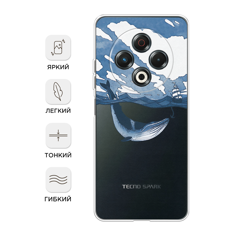 10 цен на Чехол на Tecno Spark 30 / Текно Спарк 30 с принтом Большой кит, прозрачный