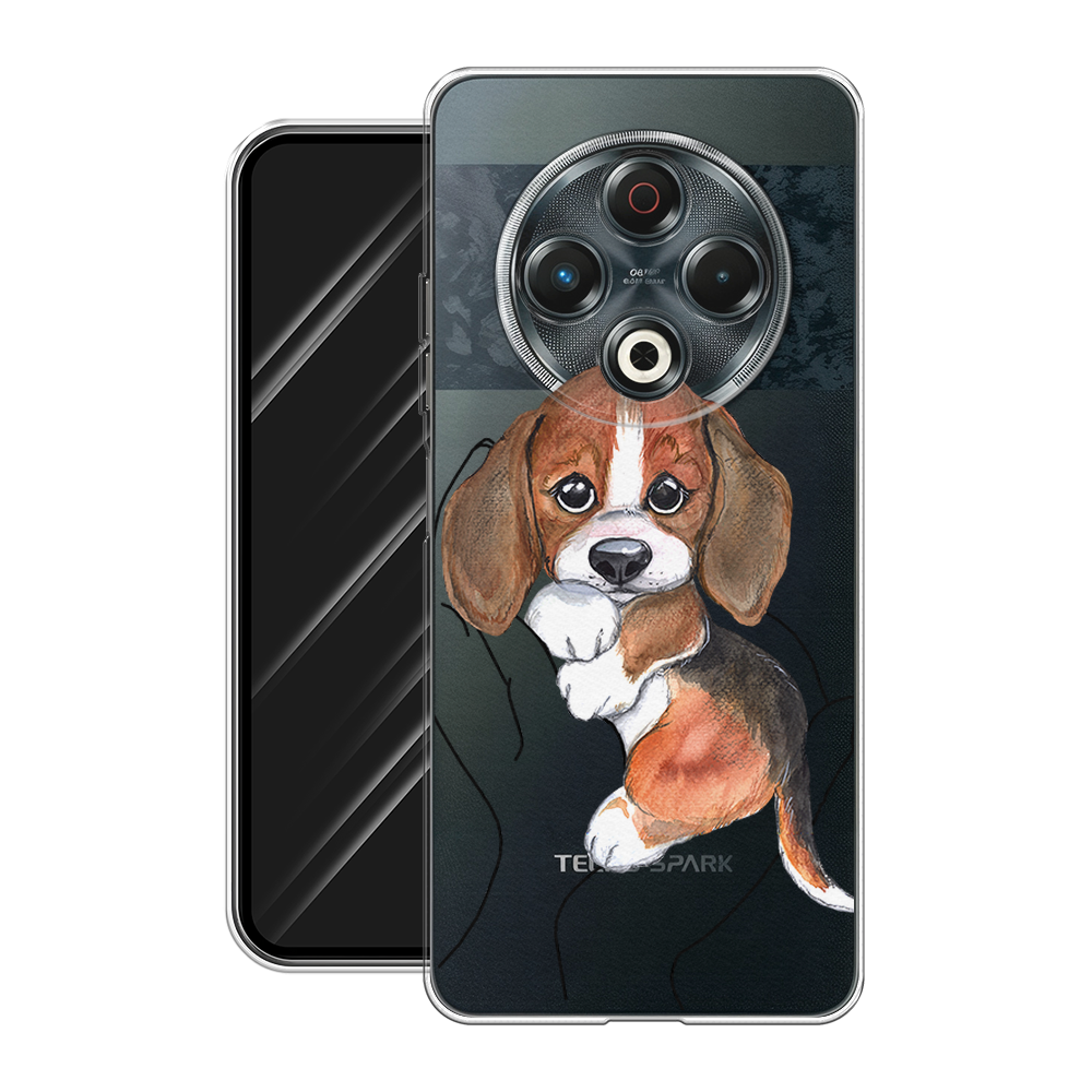 Чехол на Tecno Spark 30 / Текно Спарк 30 с принтом Бигль в ладошках, прозрачный информация: