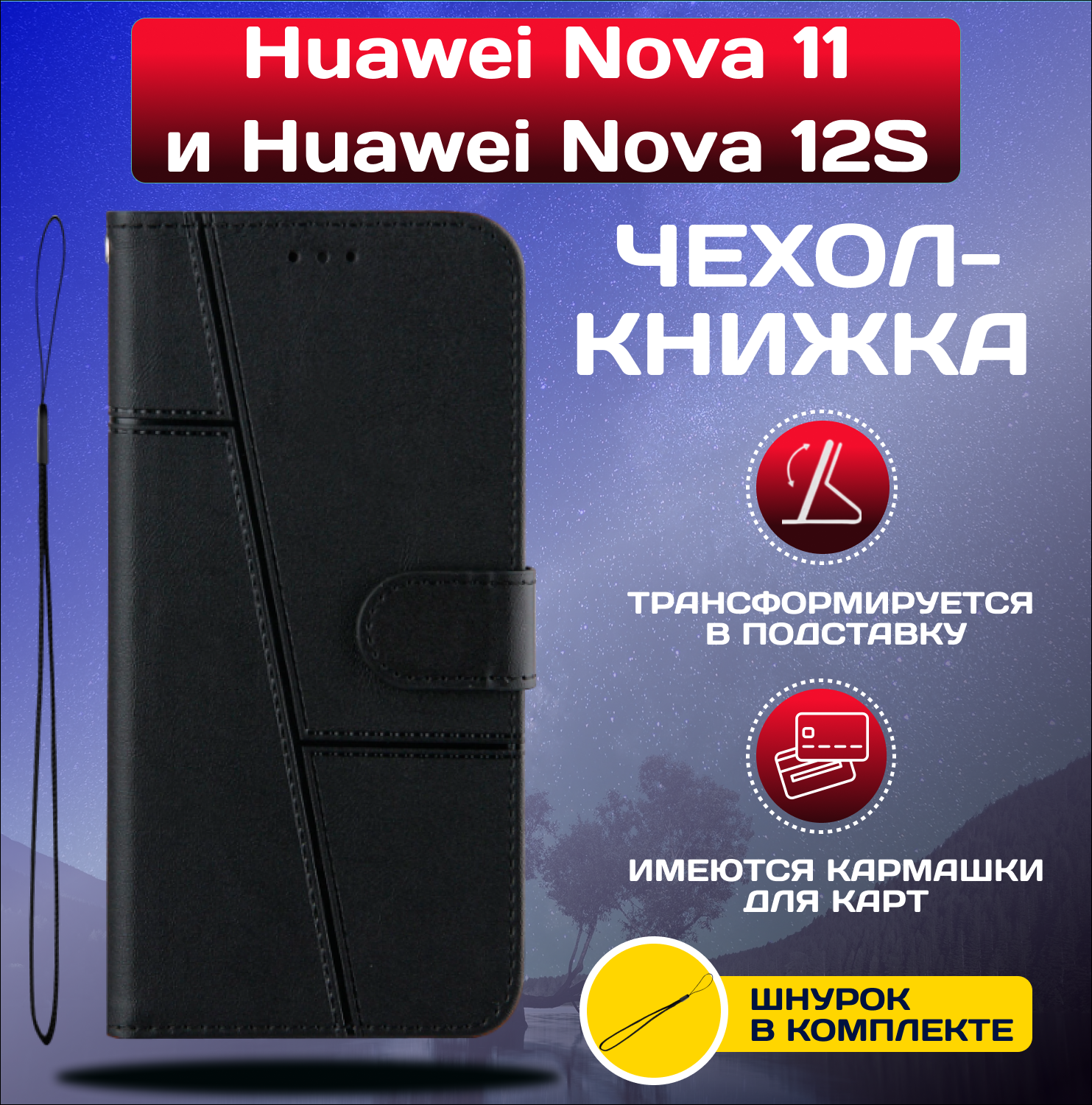 Чехол книжка wallet case для Huawei Nova 11 и Huawei Nova 12s / Хуавей Нова 11 и Хуавей Нова 12s (Черная) информация: