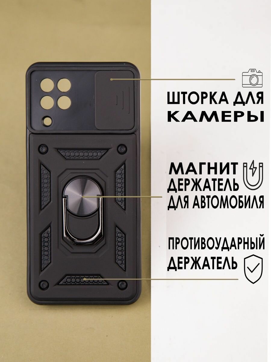 Чехол на Samsung Galaxy A22, M22, M32 с магнитом и кольцом, черный информация: