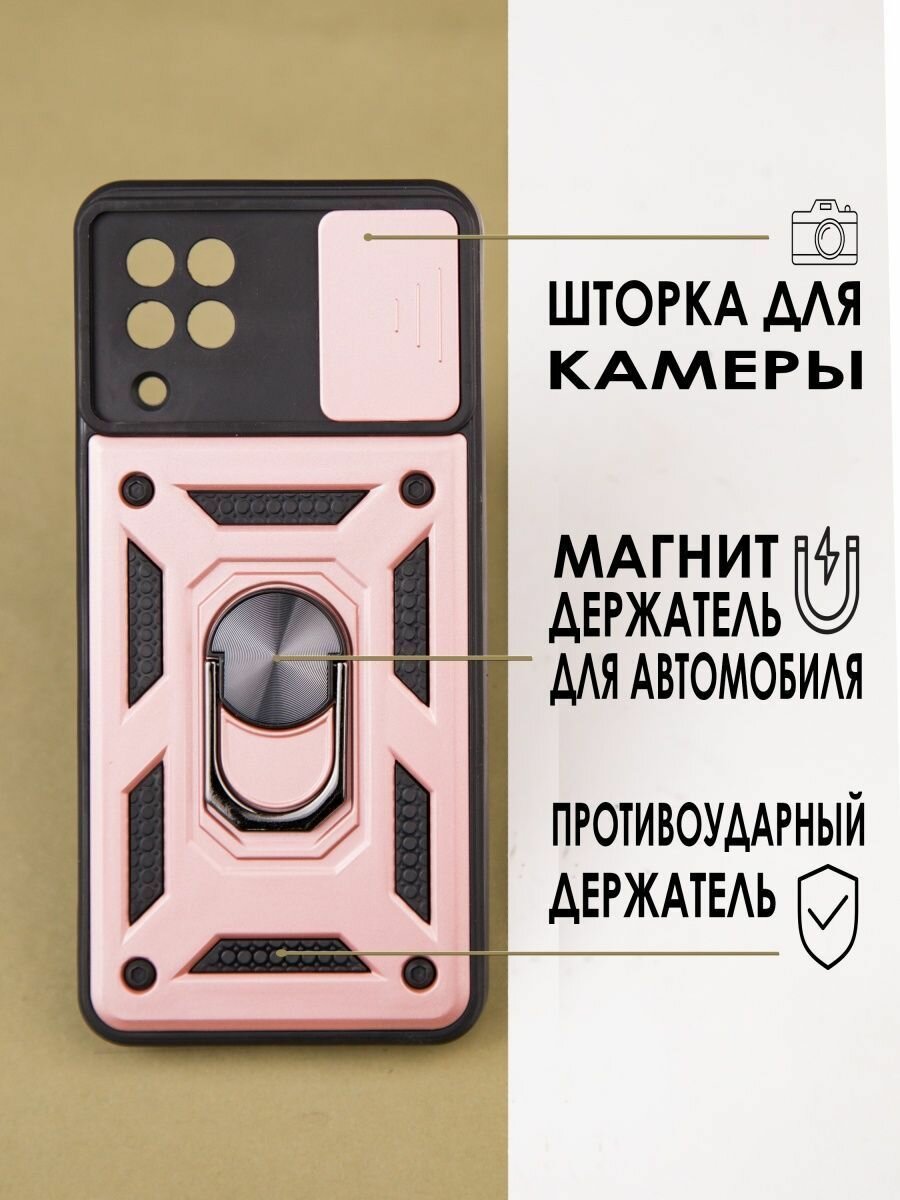Чехол на Samsung Galaxy A22, M22, M32 с магнитом и кольцом, розовый информация: