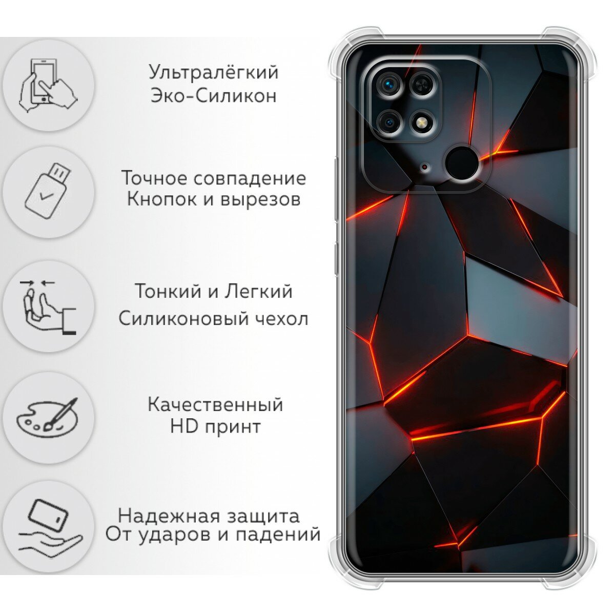 Отзывы на Чехол для Xiaomi Redmi 10C с принтом Черный на Ксиоми Редми 10с