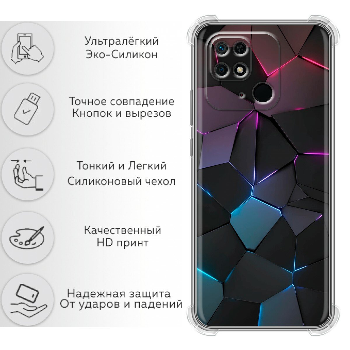 Отзывы на Чехол для Xiaomi Redmi 10C с принтом геометрия неона на Ксиоми Редми 10с