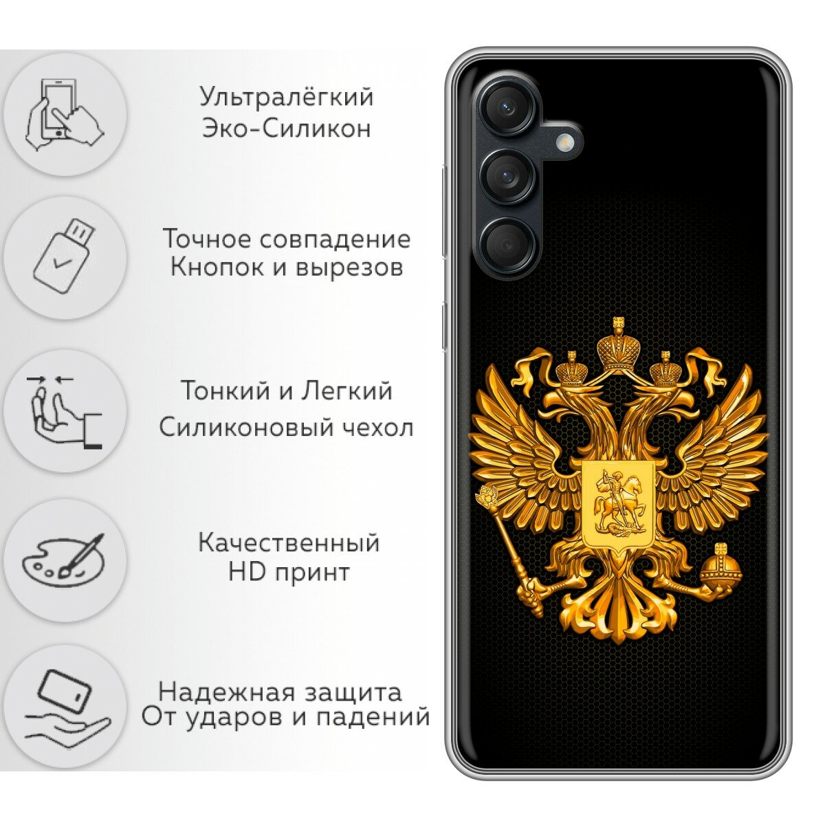 Отзывы на Чехол для Samsung Galaxy M55 с принтом Герб России желтый на Самсунг Галакси М55