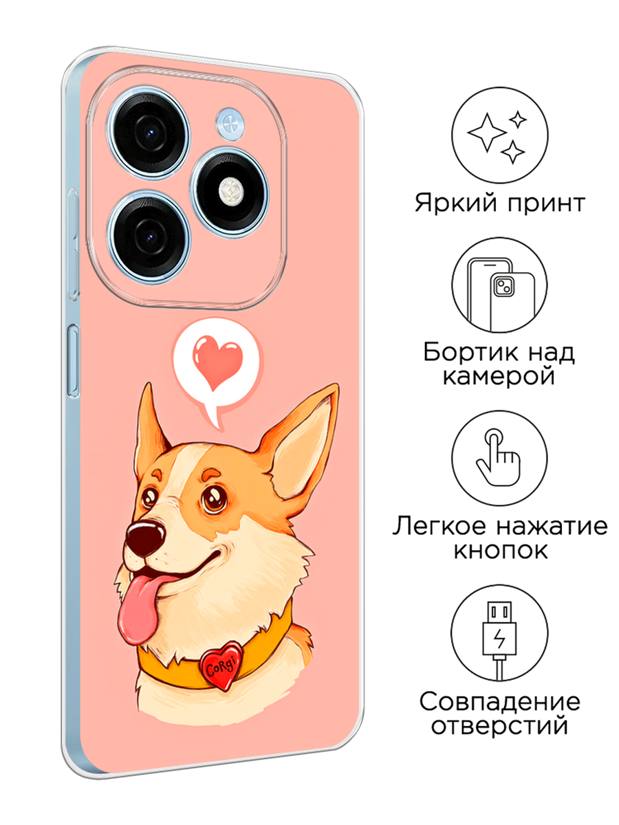 Чехол на Tecno Spark 20 / Текно Спарк 20 с принтом Корги язык информация: