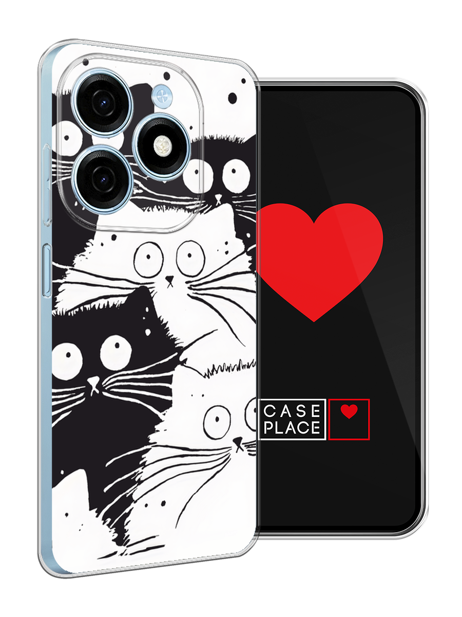 10 цен на Чехол на Tecno Spark 20 / Текно Спарк 20 с принтом Коты черно-белые