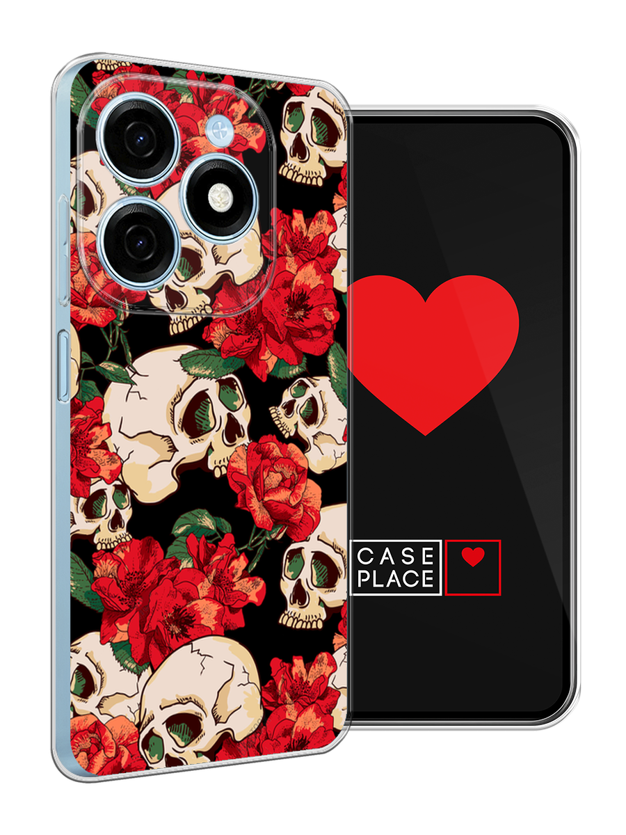Чехол на Tecno Spark 20 / Текно Спарк 20 с принтом Черепа с цветами информация: