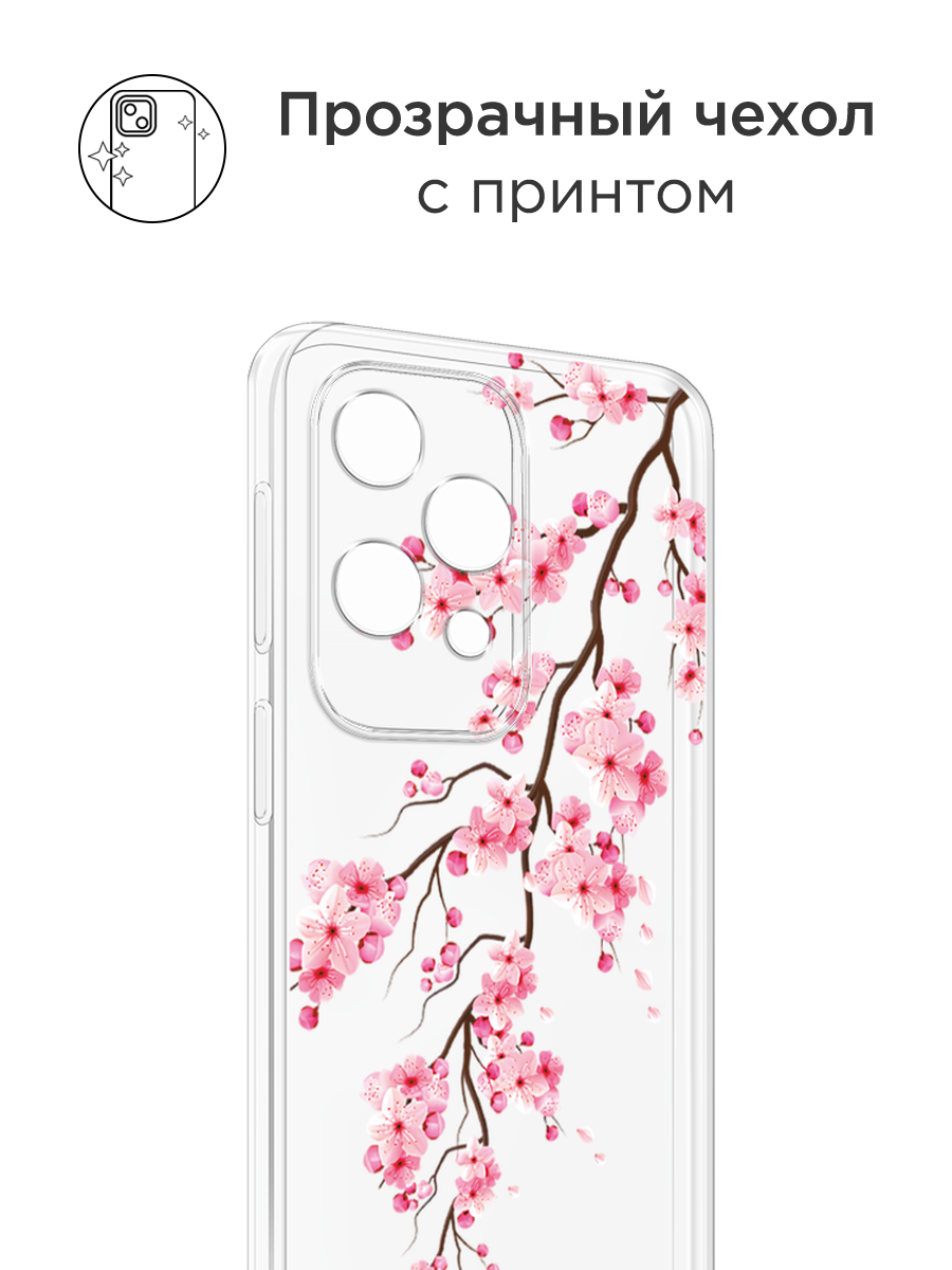 10 цен на Чехол на Tecno Spark 20 / Текно Спарк 20 с принтом Розовая сакура, прозрачный