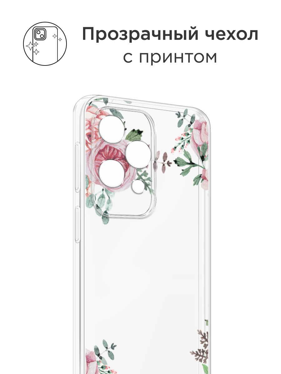 10 цен на Чехол на Tecno Spark 20 / Текно Спарк 20 с принтом Нежные розы акварель, прозрачный