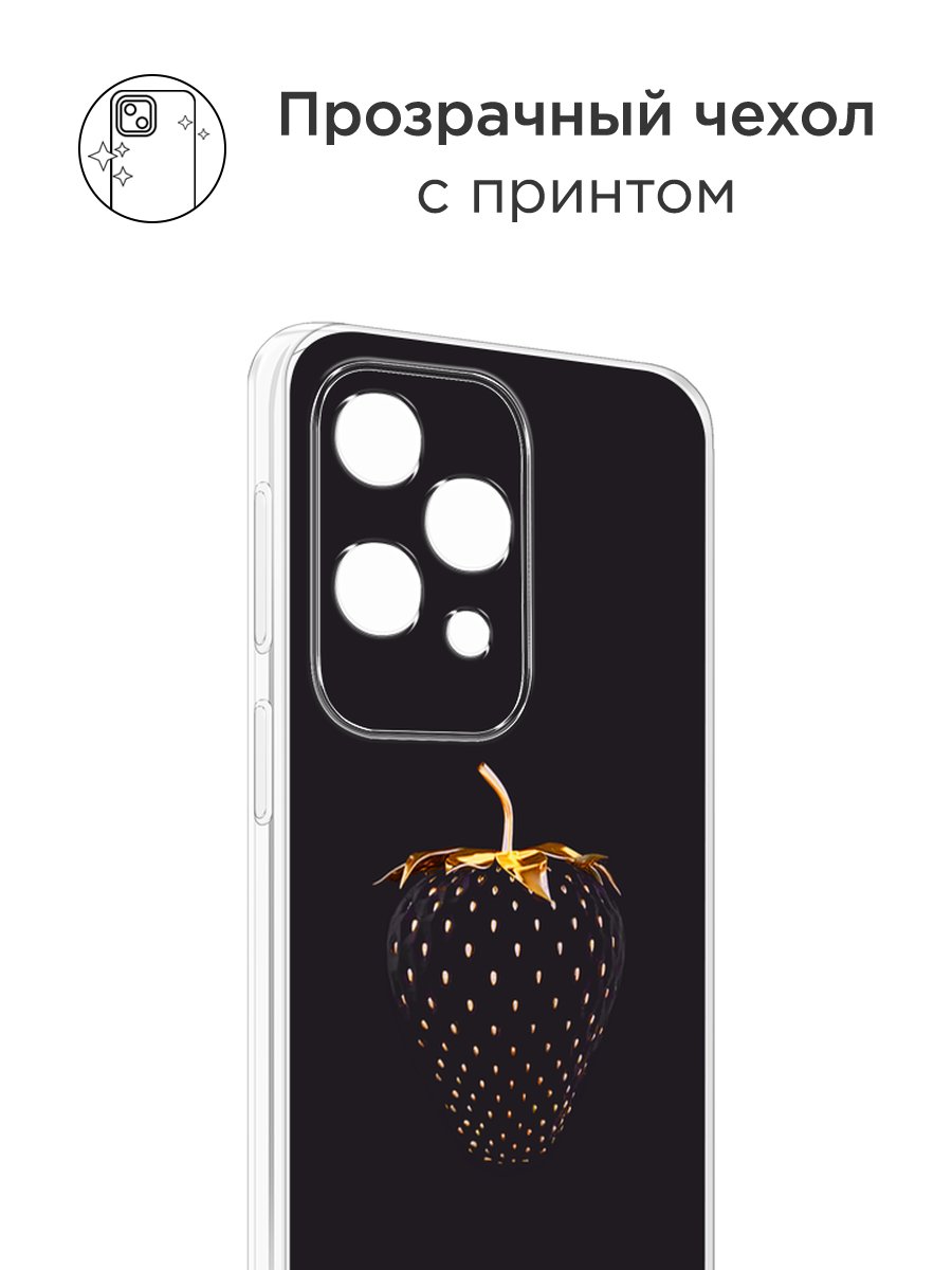 10 цен на Чехол на Tecno Spark 20 / Текно Спарк 20 с принтом Черно-золотая клубника