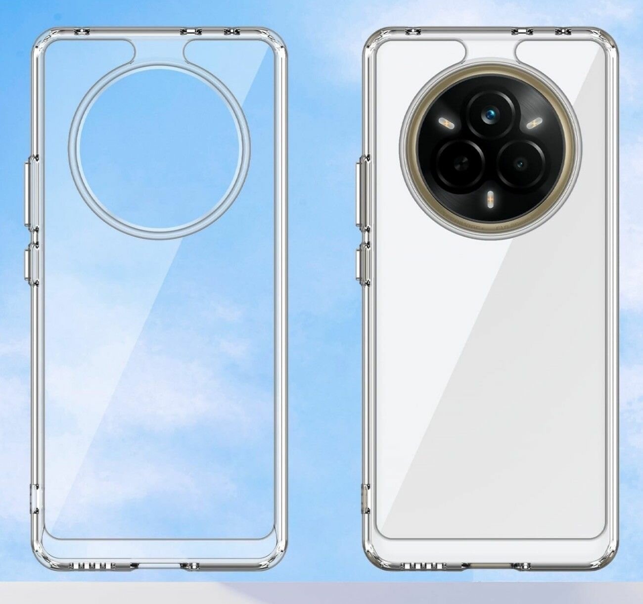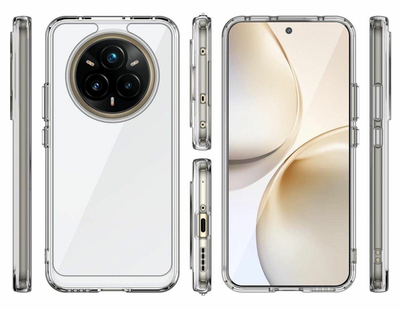 Чехол на Realme 14 Pro Plus (14 Pro+) пластиковый с силиконовой окантовкой прозрачный информация: