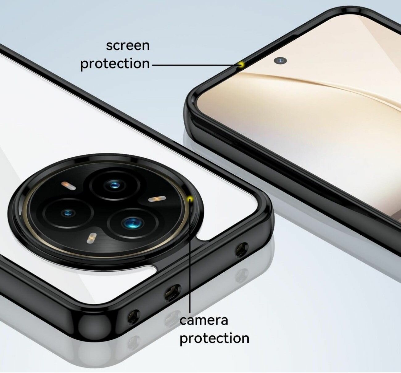 Чехол на Realme 14 Pro Plus (14 Pro+) пластиковый с силиконовой окантовкой чёрный информация: