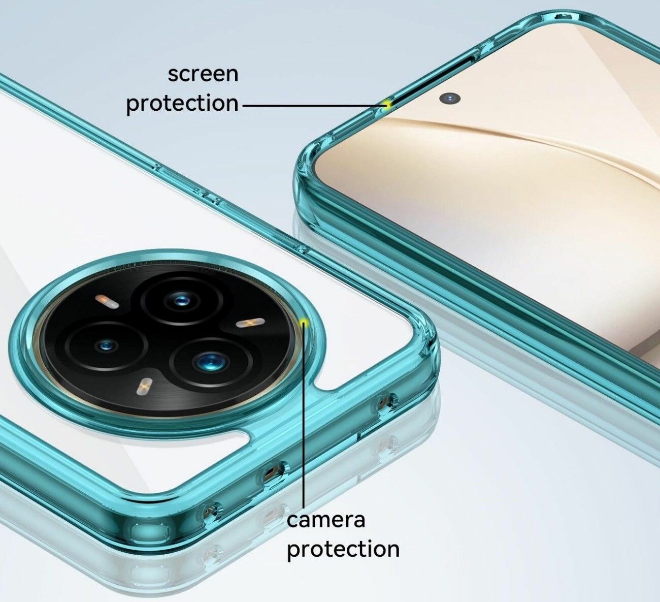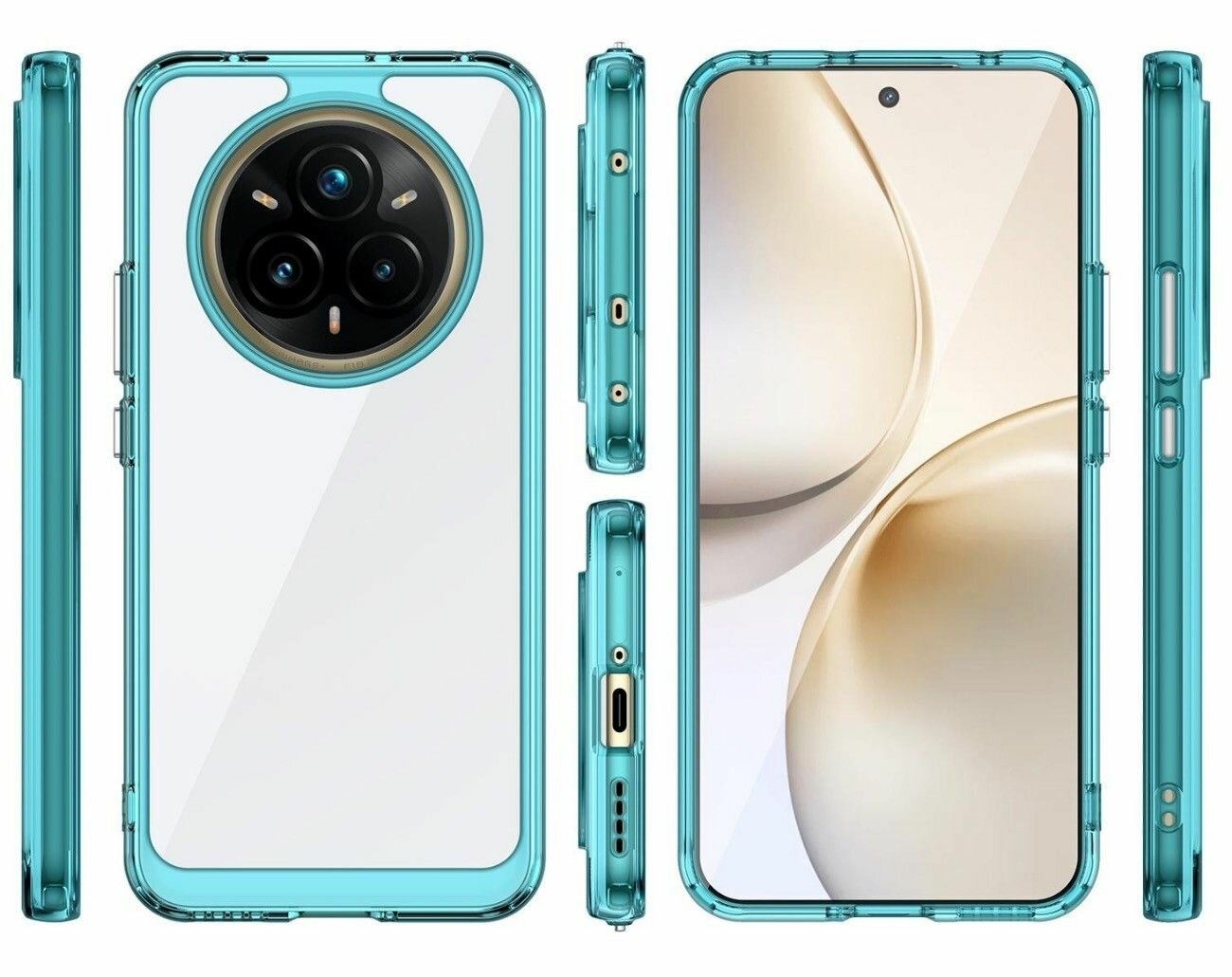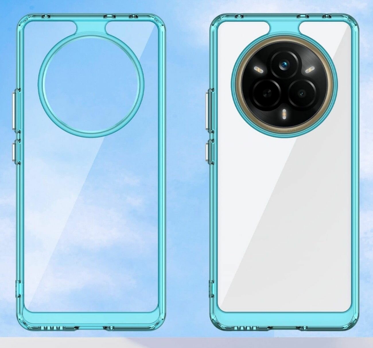 Чехол на Realme 14 Pro Plus (14 Pro+) пластиковый с силиконовой окантовкой бирюзовый информация: