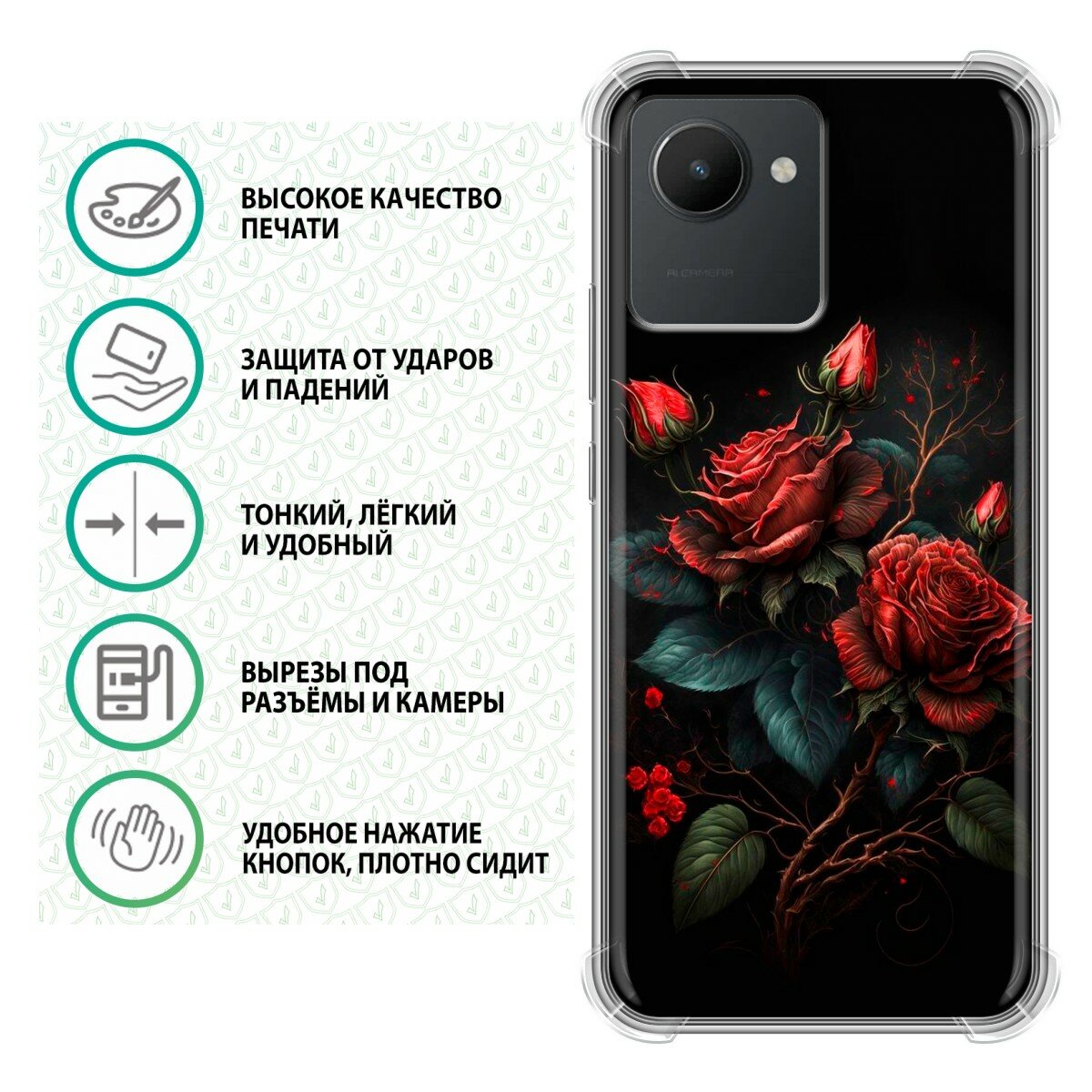 Отзывы на Дизайнерский силиконовый с усиленными углами чехол для Реалме С30 / Realme C30 Розы красные
