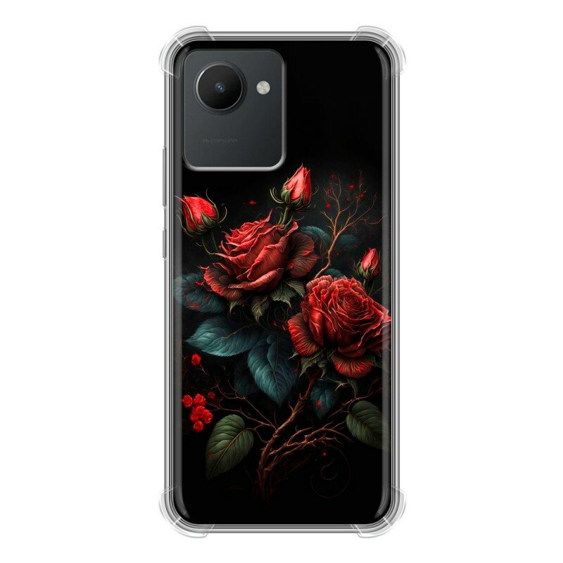 Дизайнерский силиконовый с усиленными углами чехол для Реалме С30 / Realme C30 Розы красные информация: