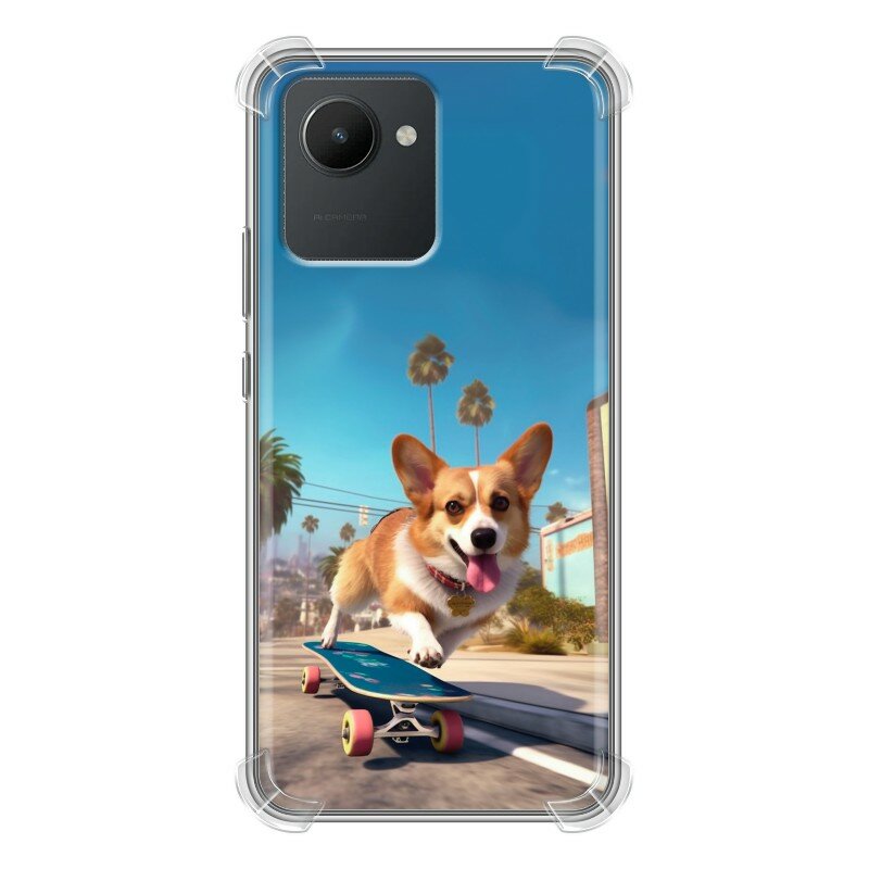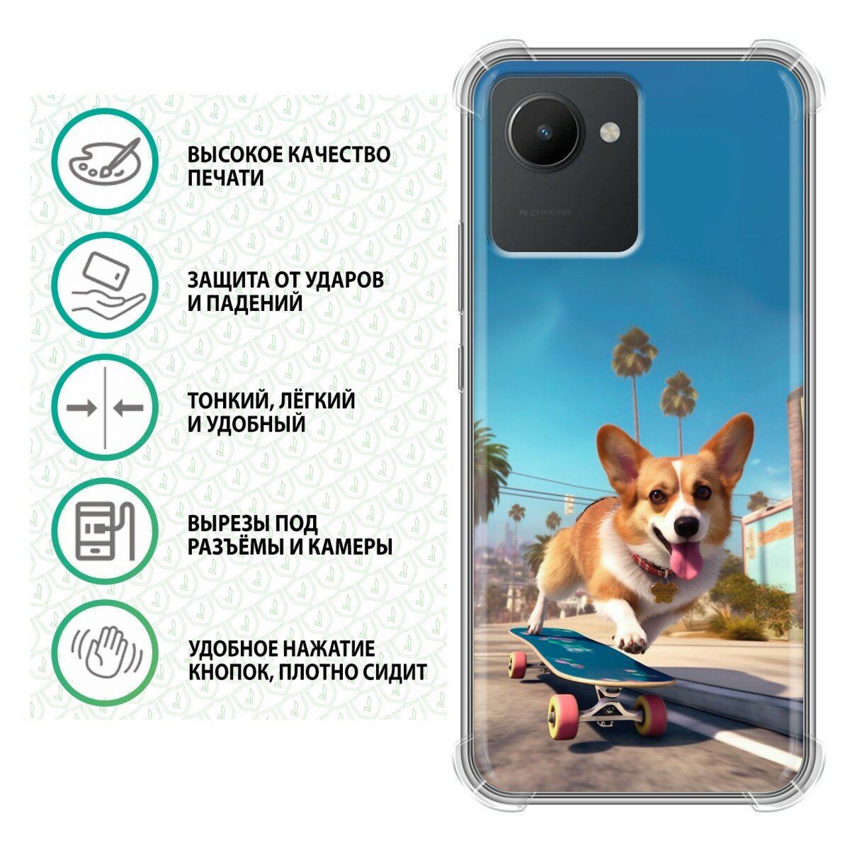 Дизайнерский силиконовый с усиленными углами чехол для Реалме С30 / Realme C30 Корги на скейте информация:
