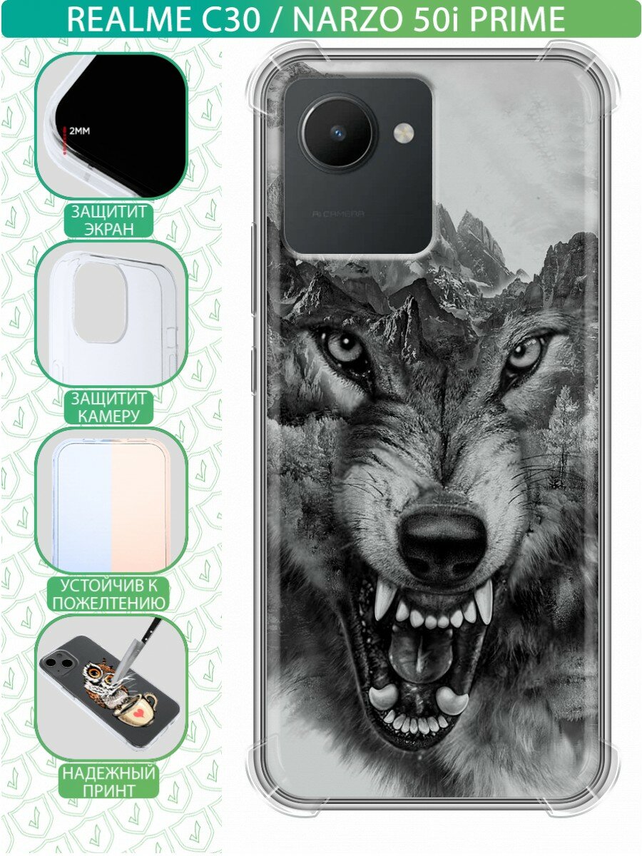 10 цен на Дизайнерский силиконовый с усиленными углами чехол для Реалме С30 / Realme C30 Волк