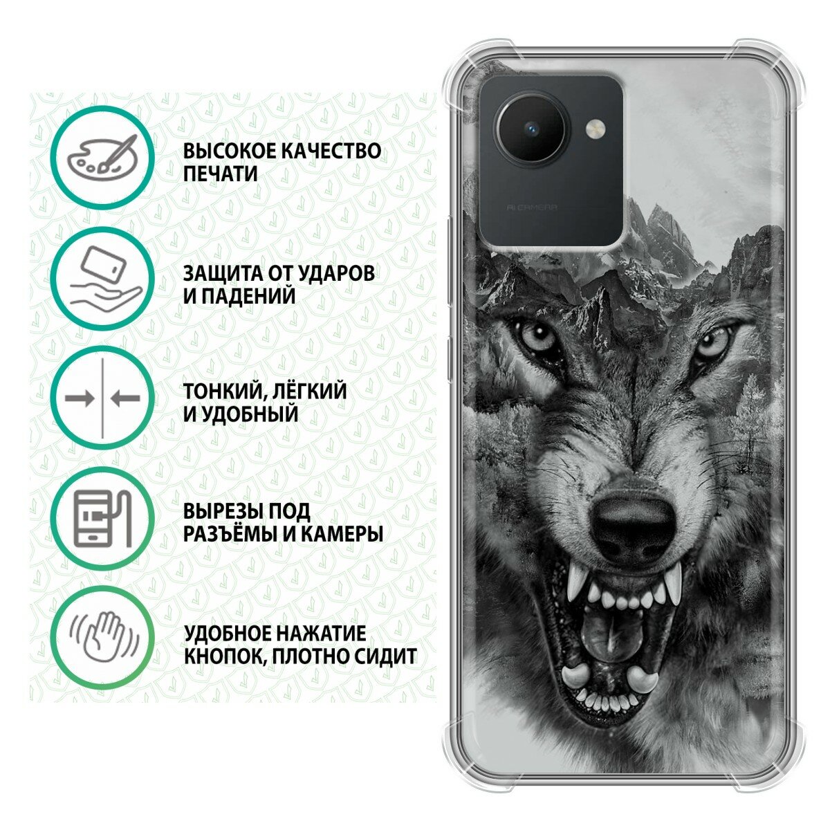 Отзывы на Дизайнерский силиконовый с усиленными углами чехол для Реалме С30 / Realme C30 Волк