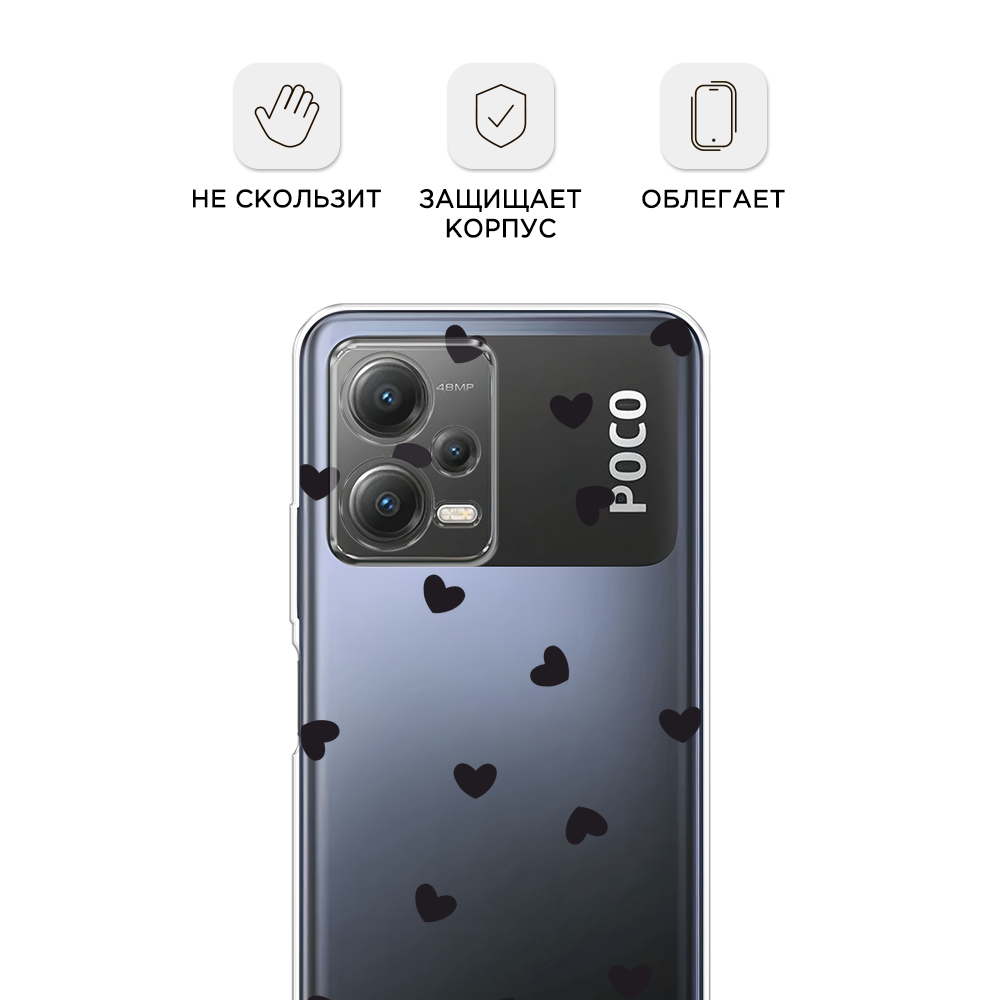Отзывы на Чехол на Xiaomi Poco X5 5G / Сяоми Поко X5 5G с принтом Маленькие чёрные сердечки, прозрачный