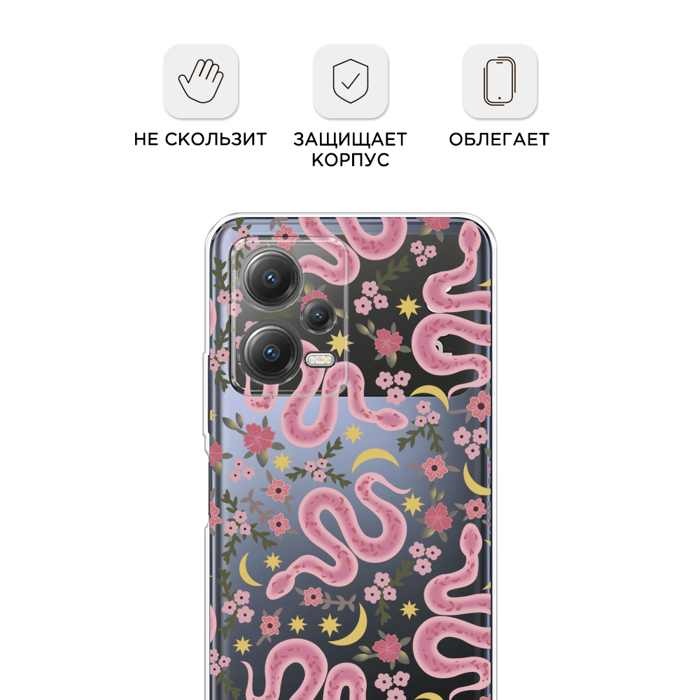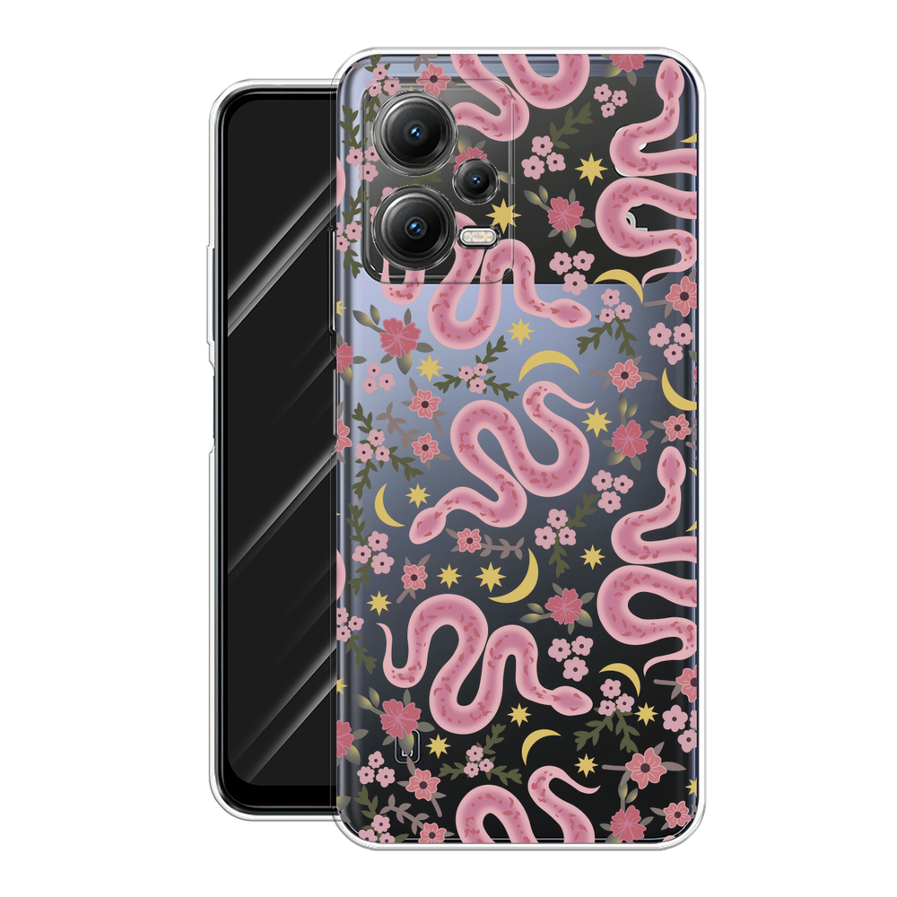10 цен на Чехол на Xiaomi Poco X5 5G / Сяоми Поко X5 5G с принтом Розовые змеи, прозрачный
