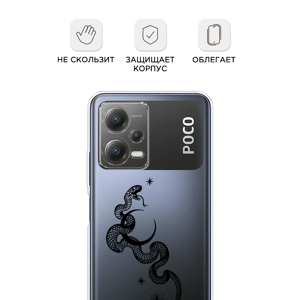 Отзывы на Чехол на Xiaomi Poco X5 5G / Сяоми Поко X5 5G с принтом Змея и полумесяц 3, прозрачный