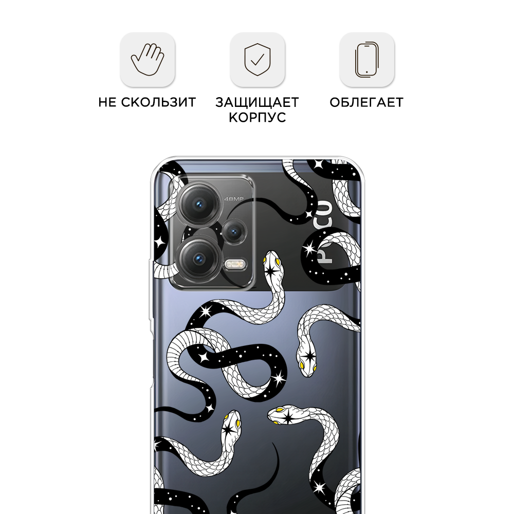 Отзывы на Чехол на Xiaomi Poco X5 5G / Сяоми Поко X5 5G с принтом Чёрно-белые змеи паттерн, прозрачный