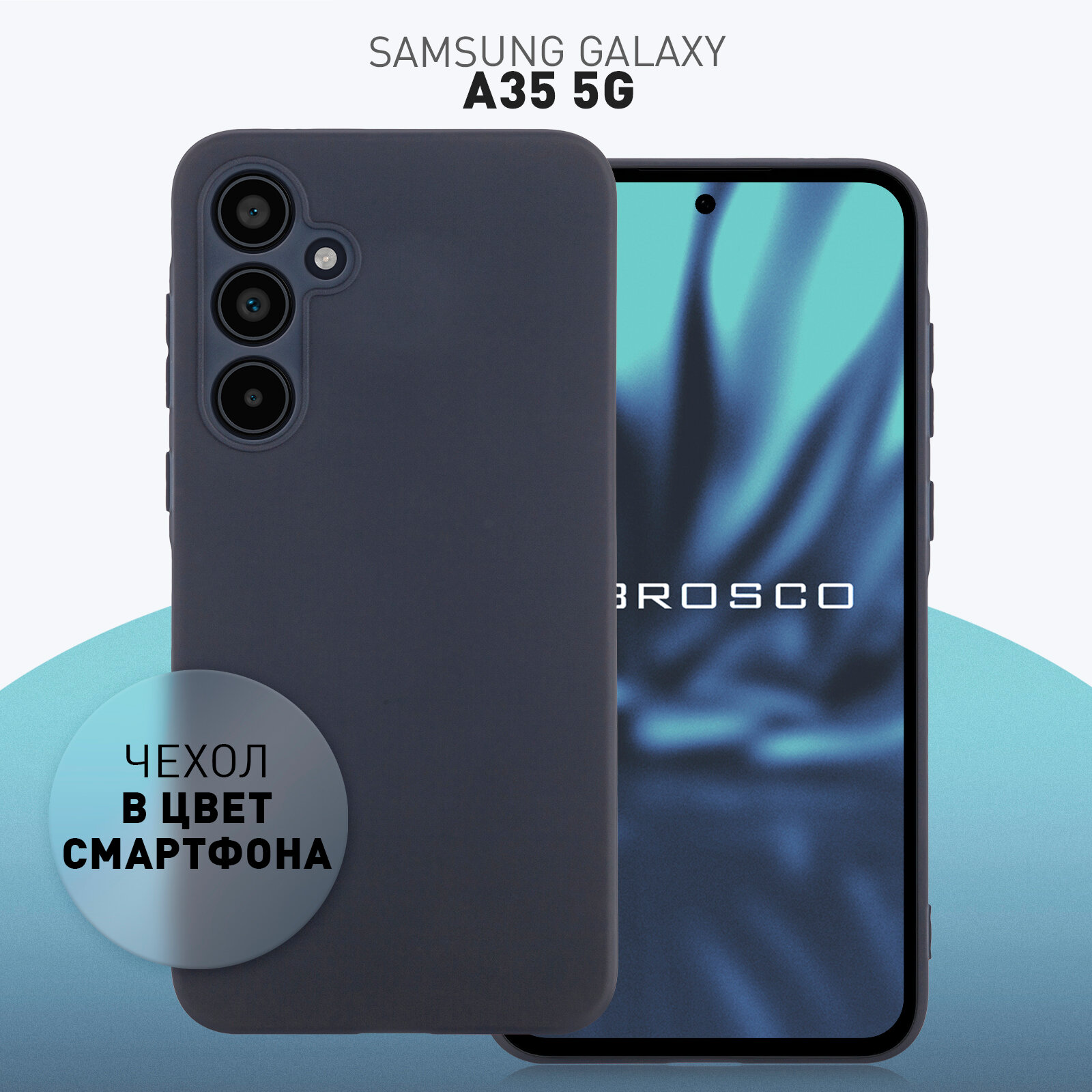 Матовый силиконовый чехол Rosco на Samsung Galaxy А35 (Самсунг Галакси А35), тонкий, темно-синий под цвет телефона информация: