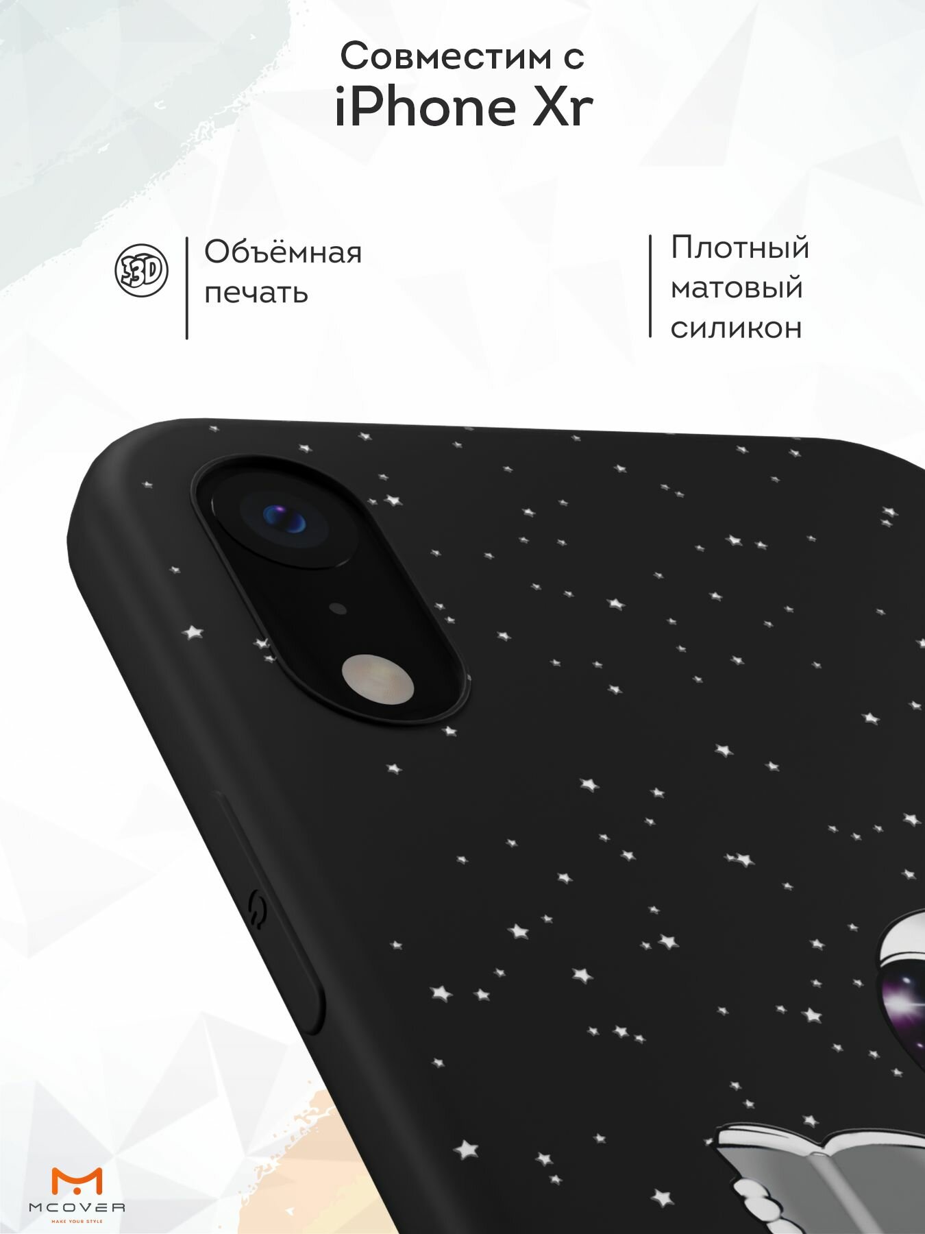 Чехол Mcover с рисунком С книгой в космосе на iPhone Xr, силиконовый, матовый, защита камеры информация: