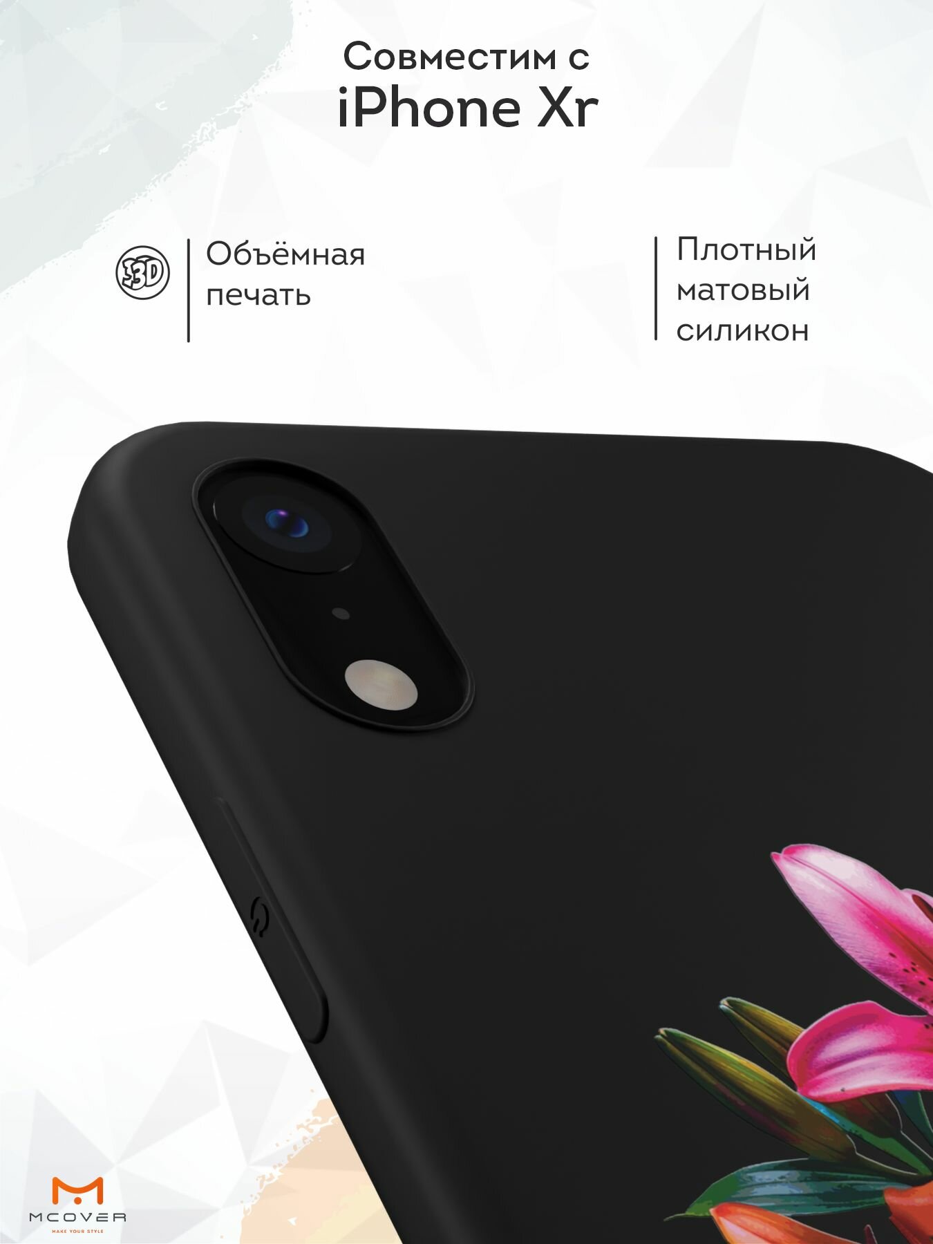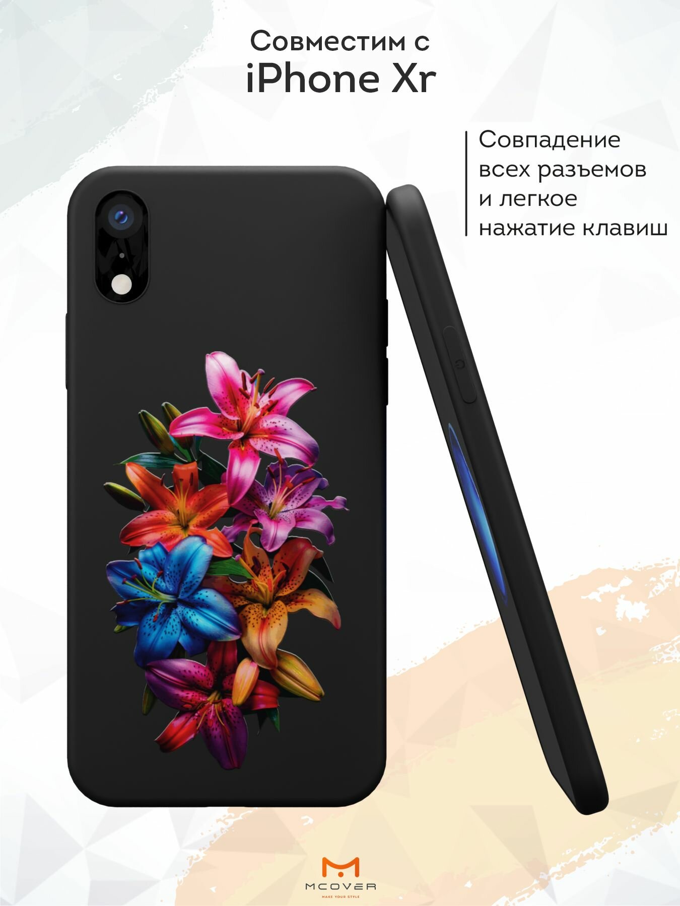 Чехол Mcover с рисунком лилии на iPhone Xr, силиконовый, матовый, защита камеры информация: