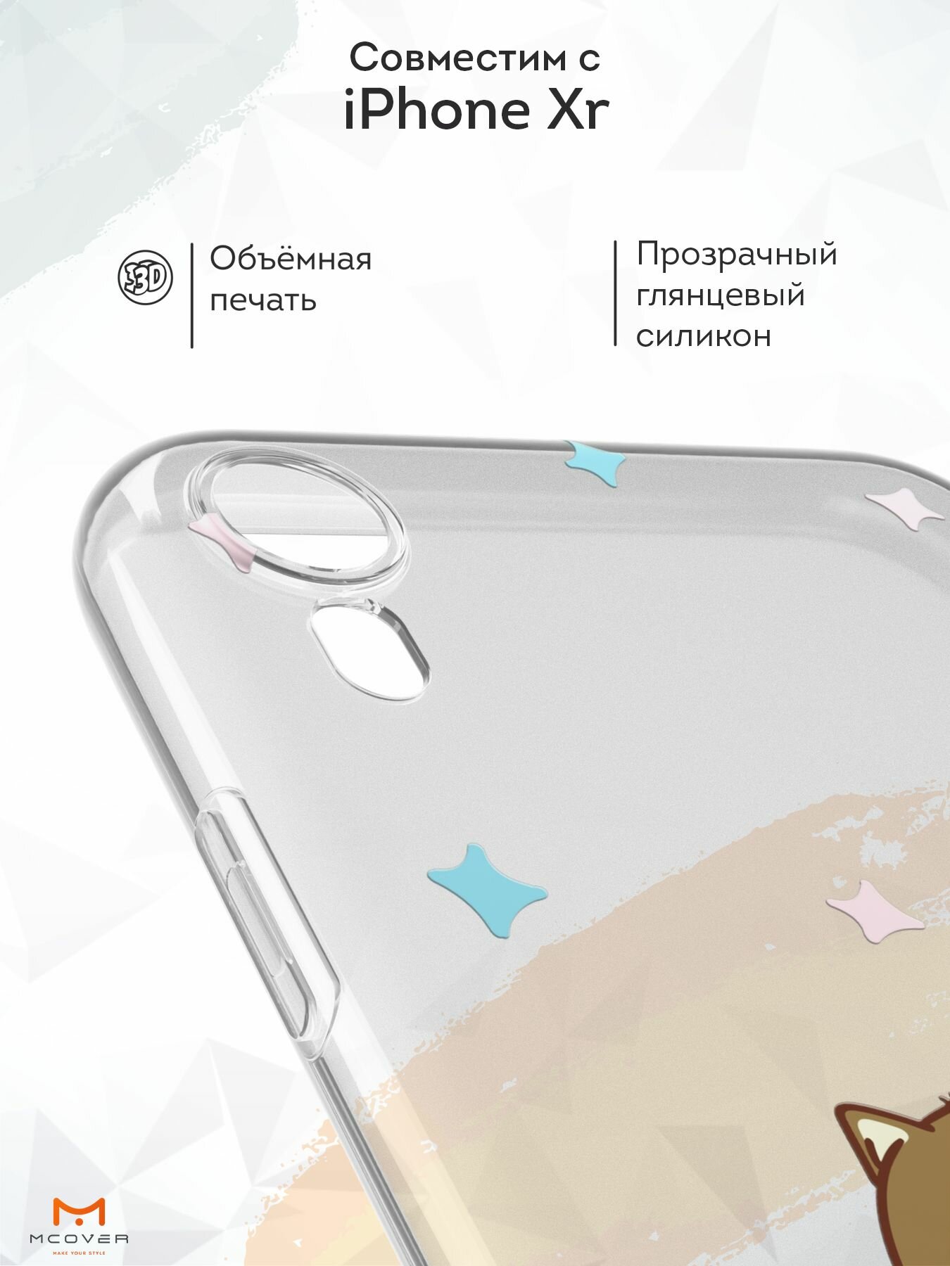 Чехол Mcover с рисунком Mew на iPhone Xr, силикон, прозрачный, защита камеры информация: