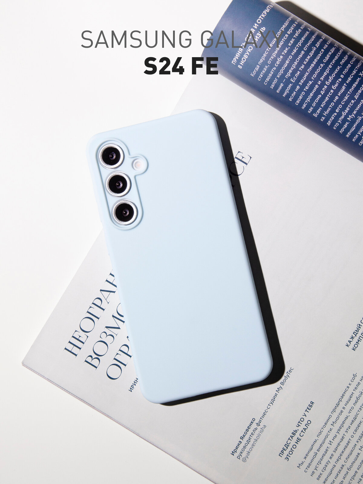 Отзывы на Матовый силиконовый чехол Rosco на Samsung Galaxy S24 FE (Самсунг Галакси С24 ФЕ), тонкий, голубой под цвет телефона
