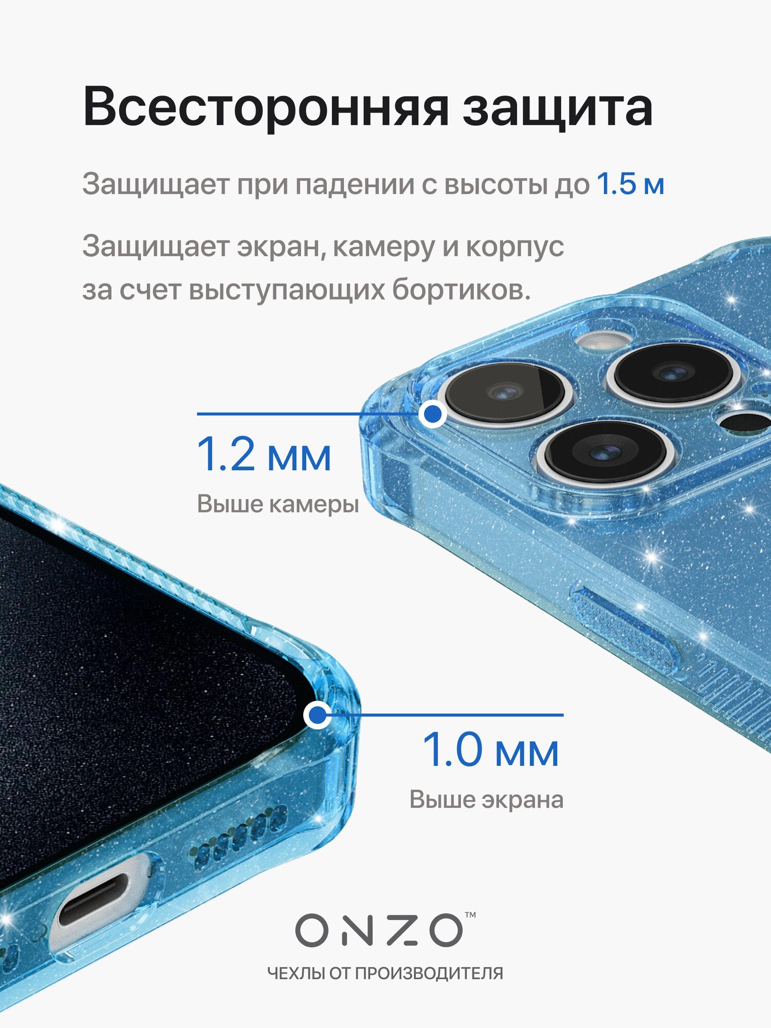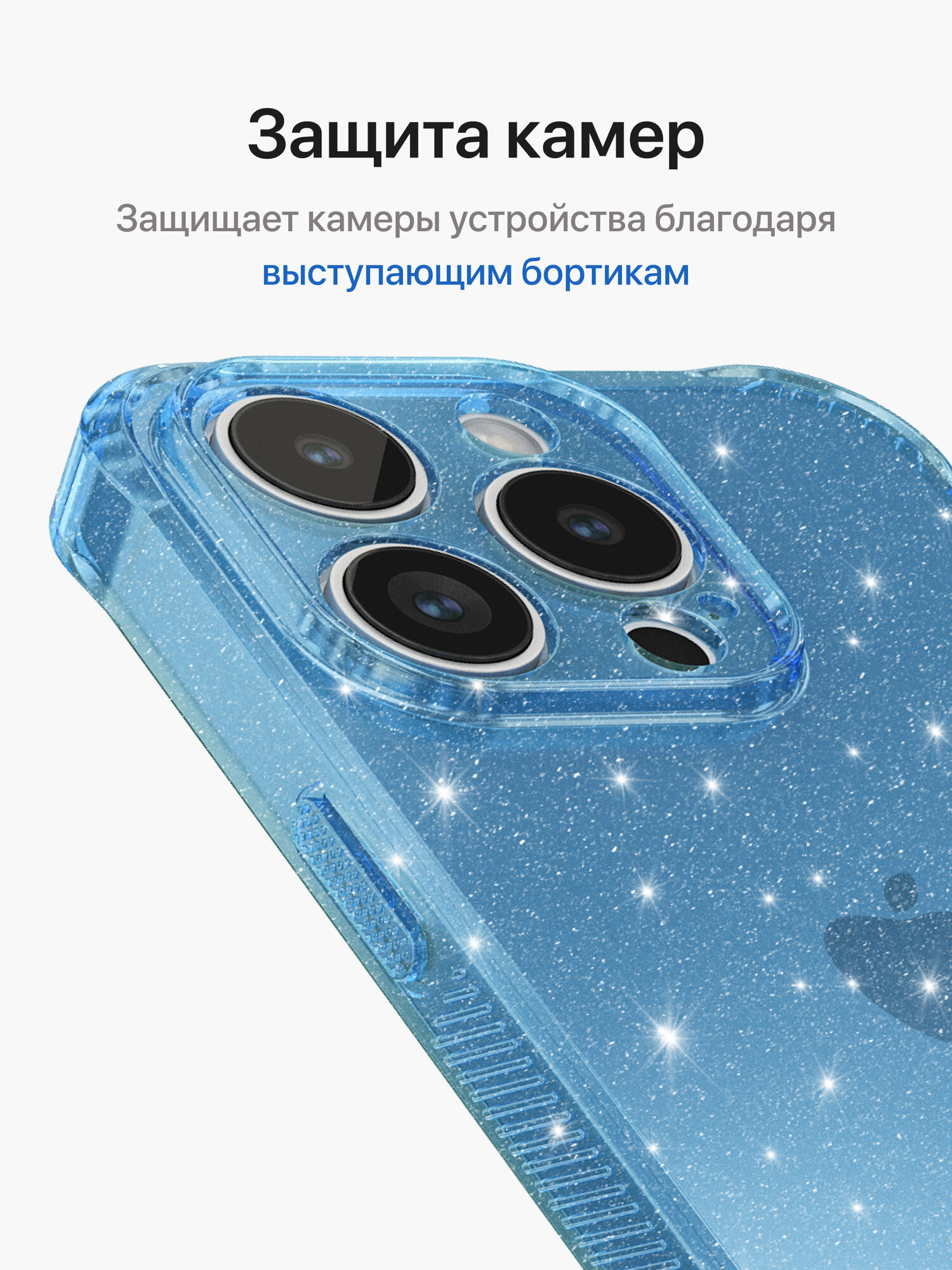 Отзывы на Блестящий чехол для iPhone 15 Pro / Айфон 15 Про с рельефными гранями, голубой