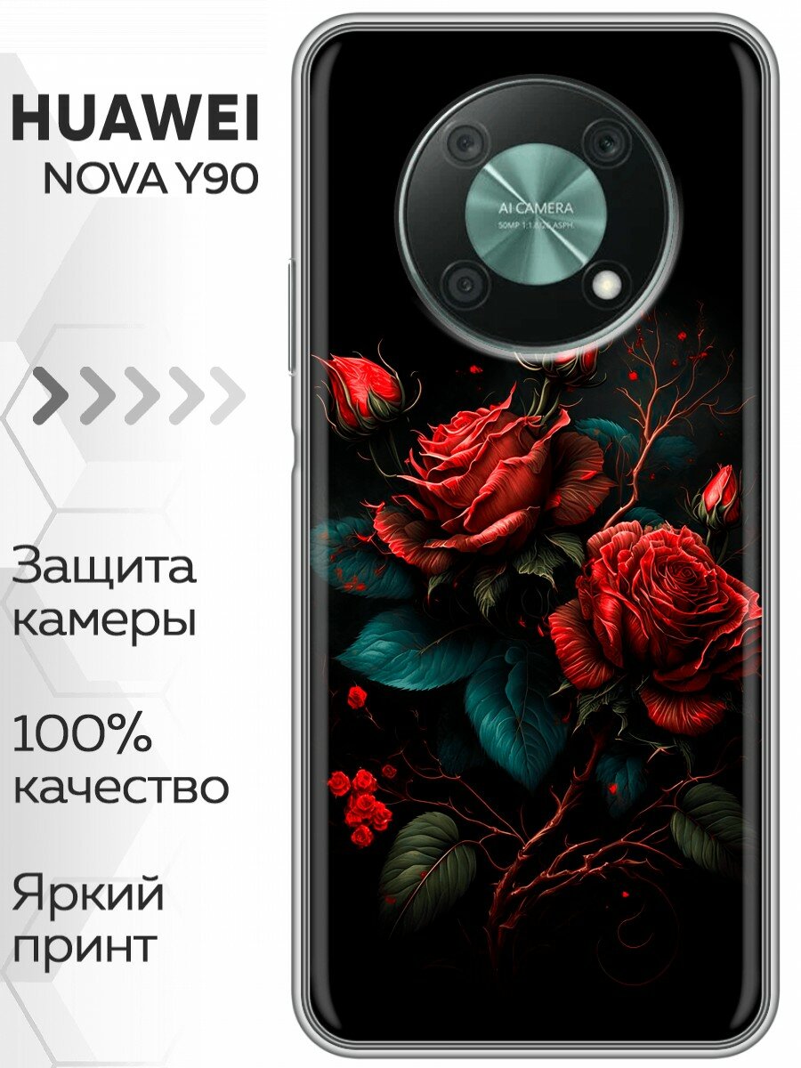 Чехол для Huawei Nova Y90 с принтом Розы красные на Хуавей Нова У90 информация: