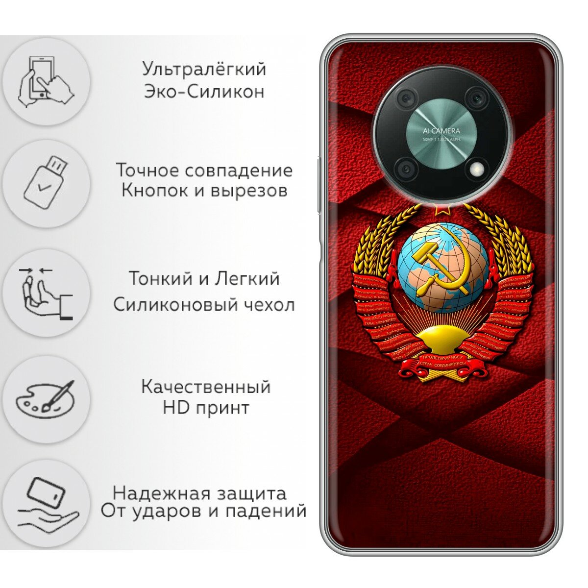Отзывы на Чехол для Huawei Nova Y90 с принтом Герб СССР на Хуавей Нова У90