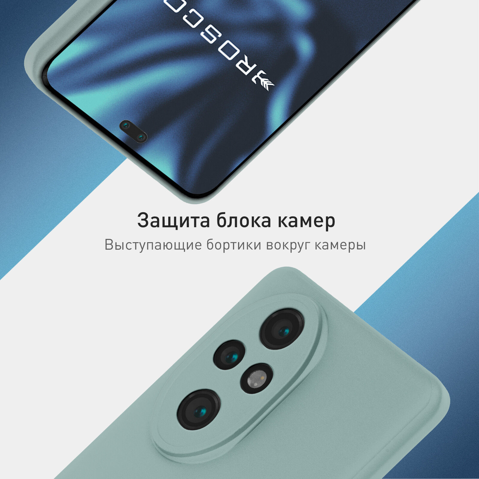 Отзывы на Матовый силиконовый чехол Rosco на Honor 200 Pro (Хонор 200 Про), тонкий, серо-голубой под цвет телефона