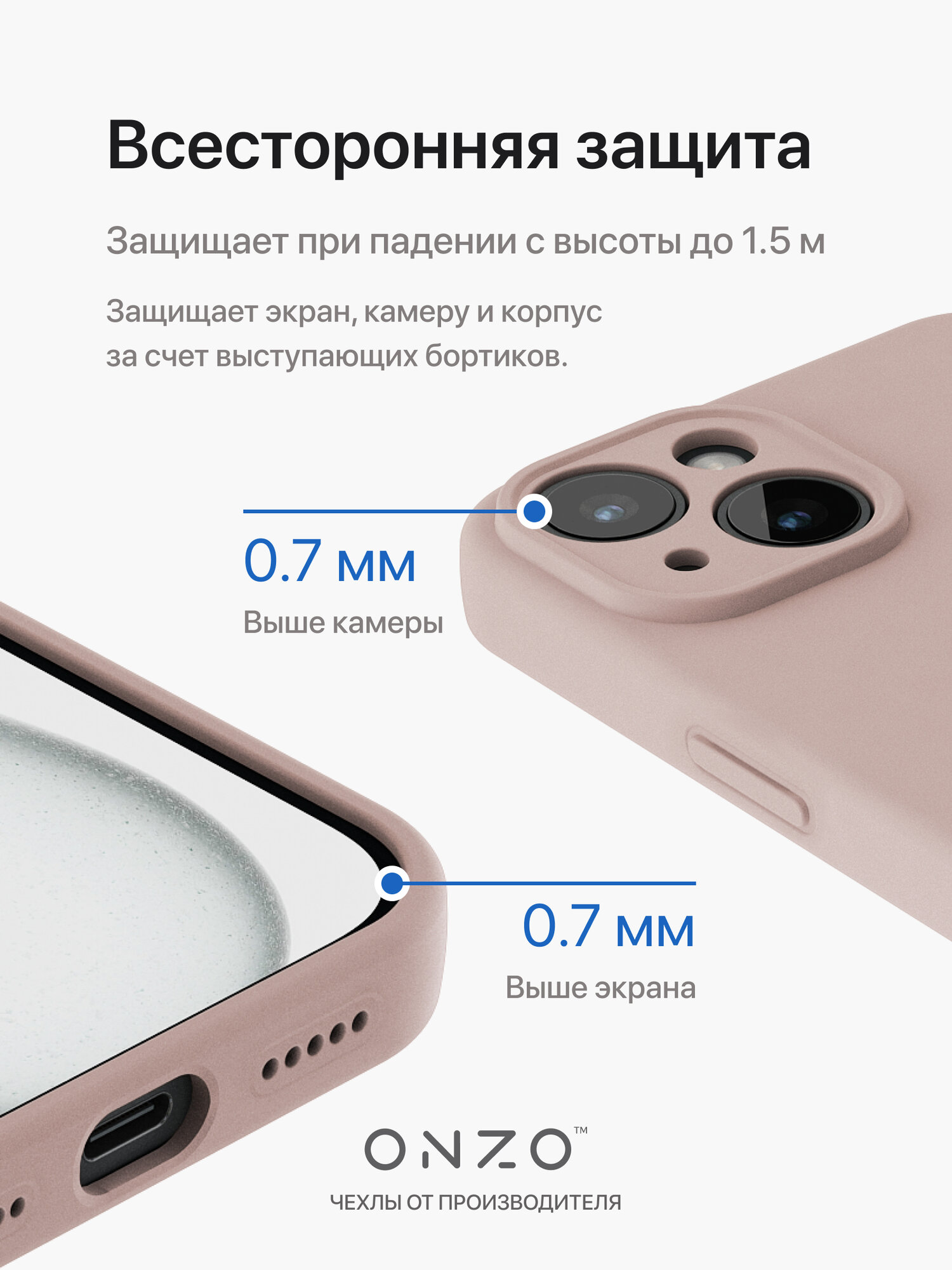 Чехол для iPhone 15 / Айфон 15 накладка с защитной покладкой из микрофибры, бежевый матовый 595 ₽