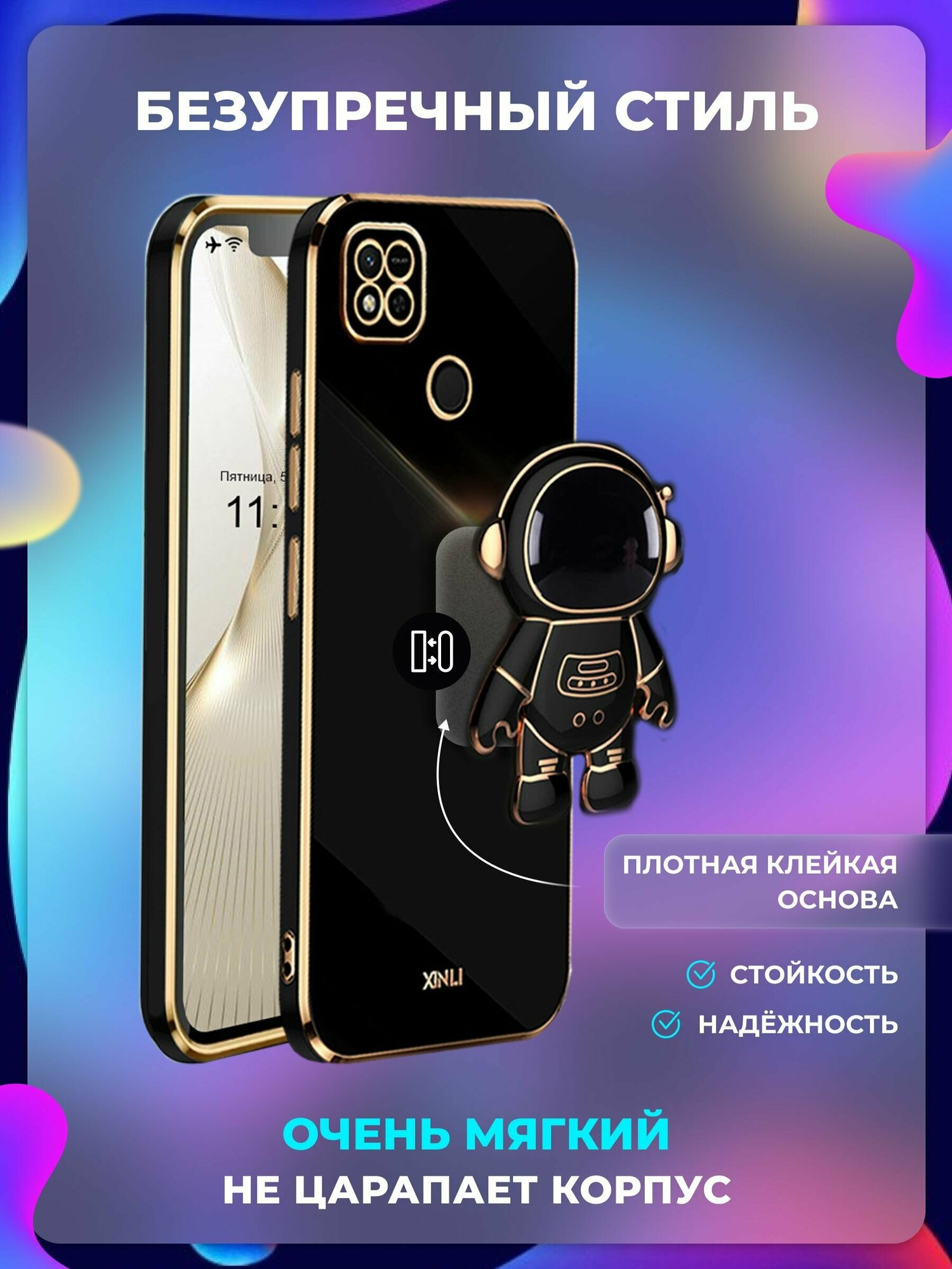 Чехол на Xiaomi Redmi 9C защитный бампер с подставкой-попсокетом Космонавт на Сяоми Редми 9c Черный 369 ₽