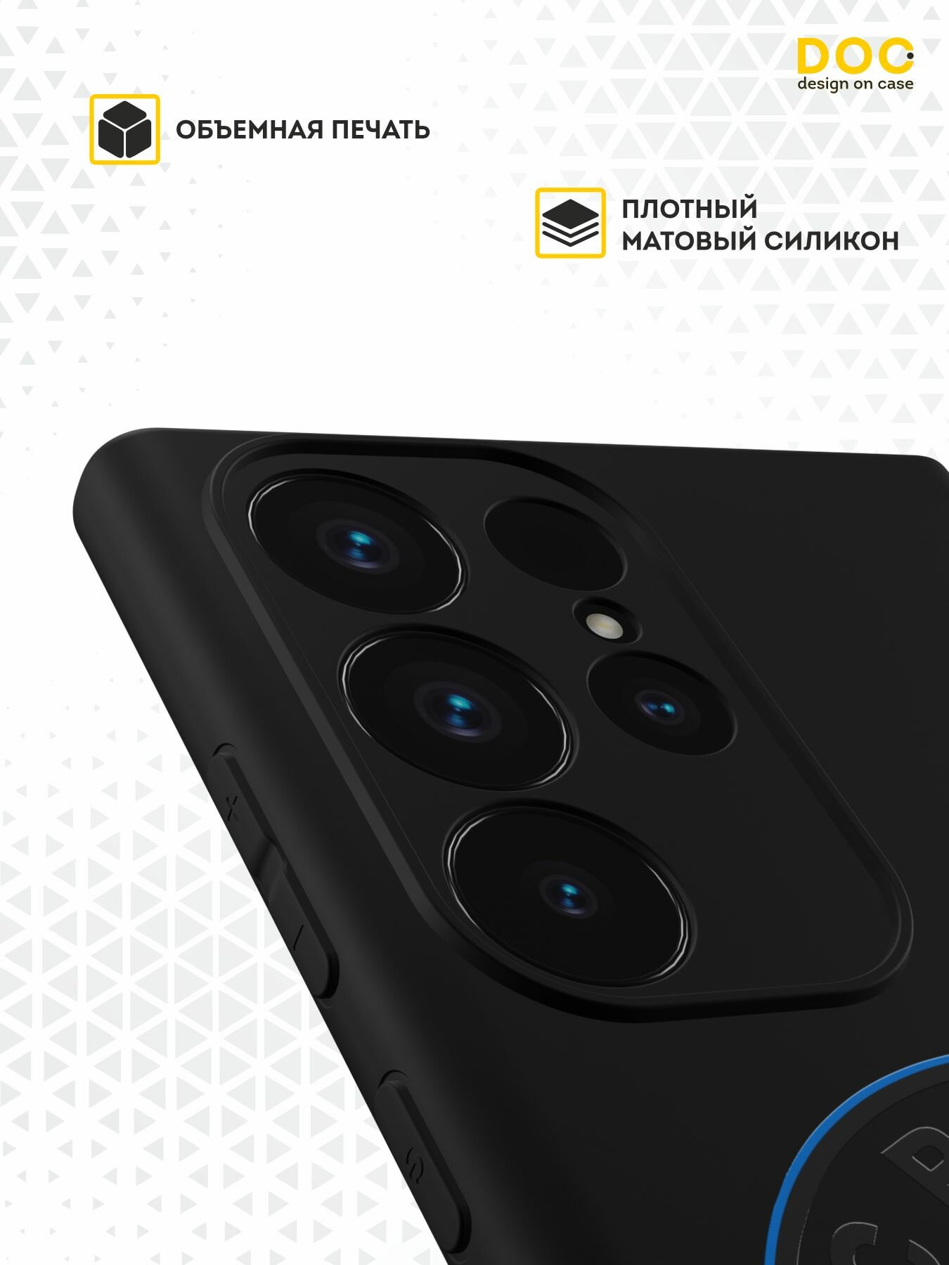 Силиконовый чехол DesignOnCase на Galaxy S23 Ultra, защита камеры, черный, с принтом 1899 530 ₽