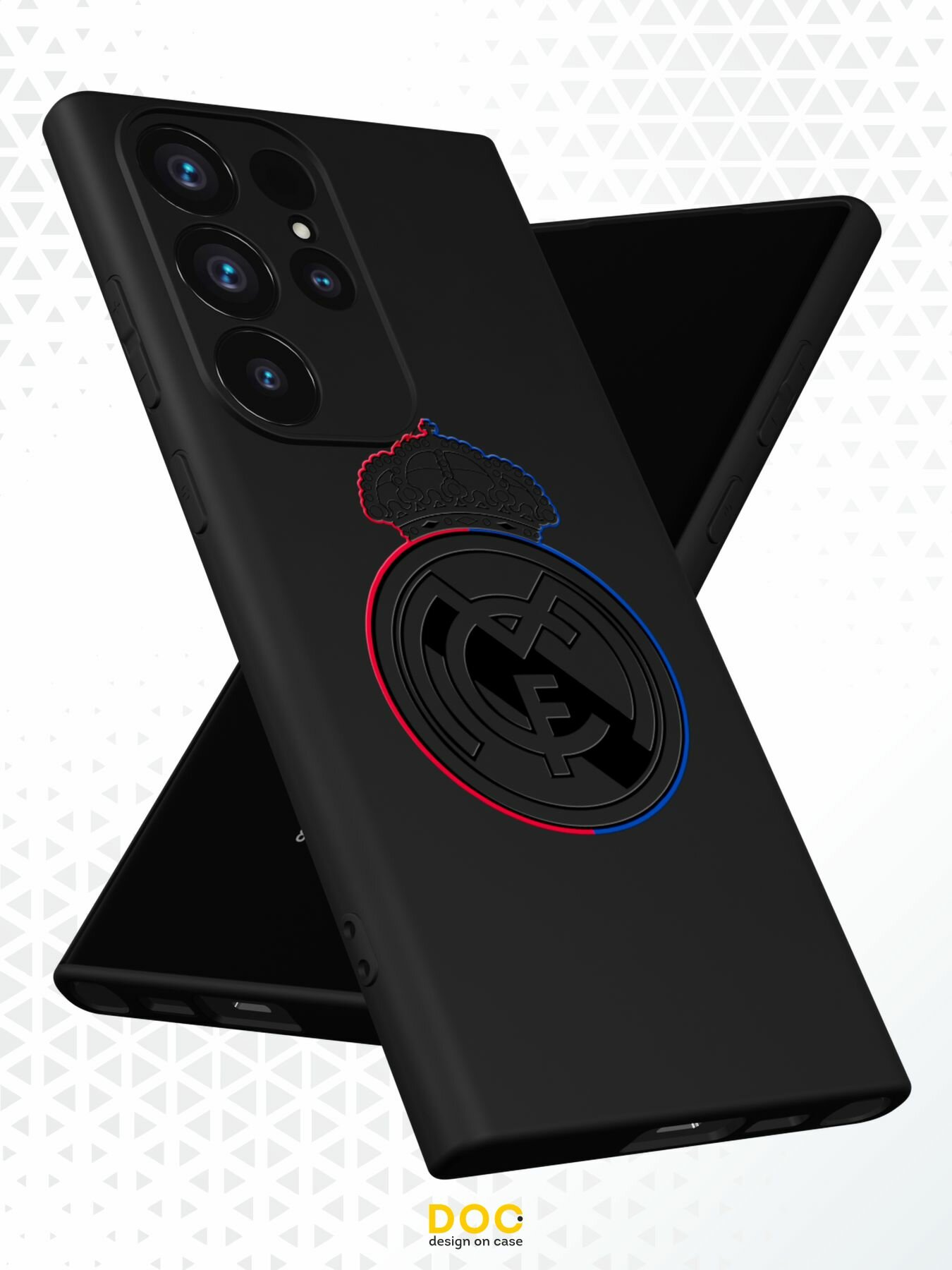 Силиконовый чехол DesignOnCase на Galaxy S23 Ultra, защита камеры, черный, с принтом FC Real Madrid информация: