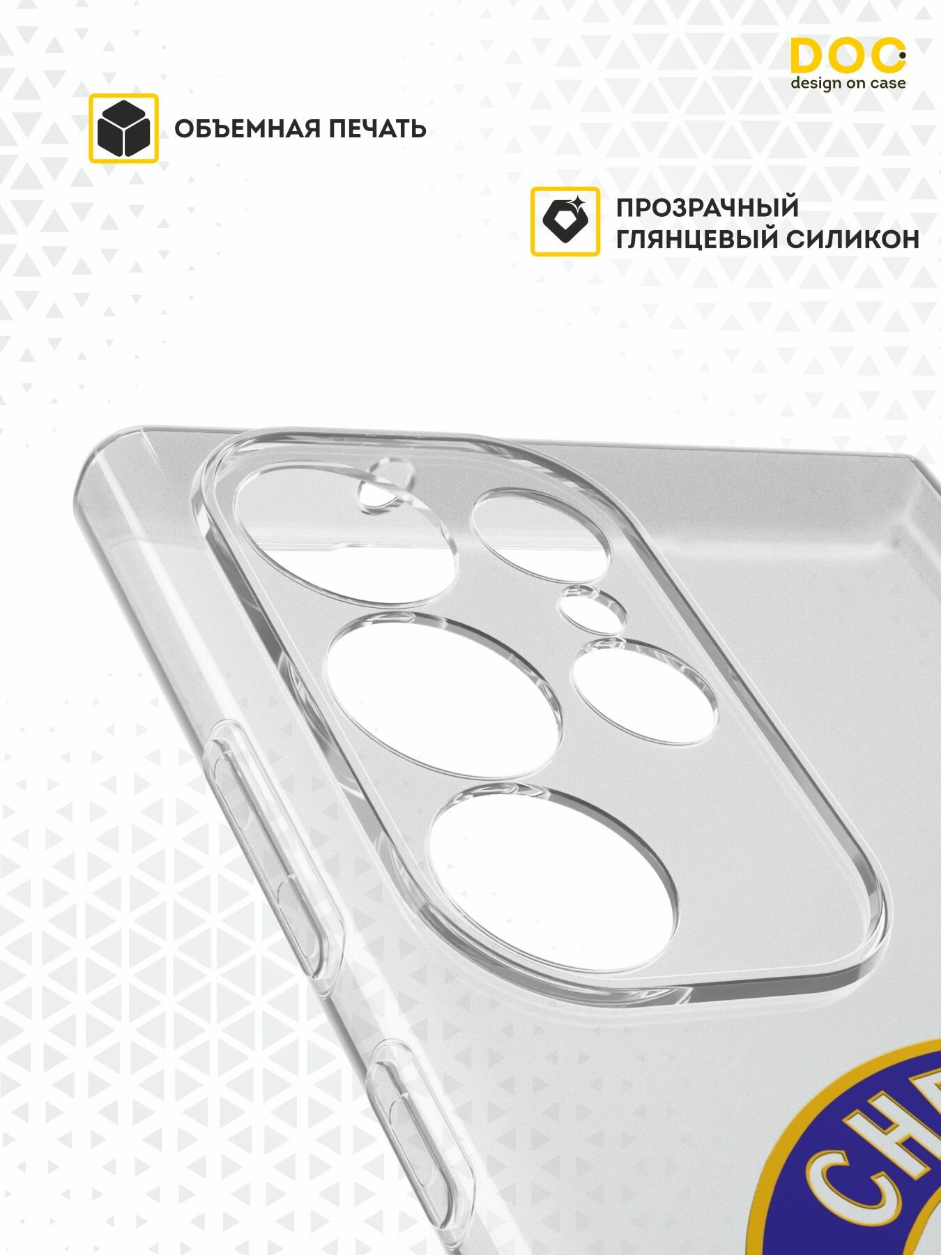 Силиконовый чехол DesignOnCase на Galaxy S23 Ultra, защита камеры, прозрачный, с принтом Chelsea информация: