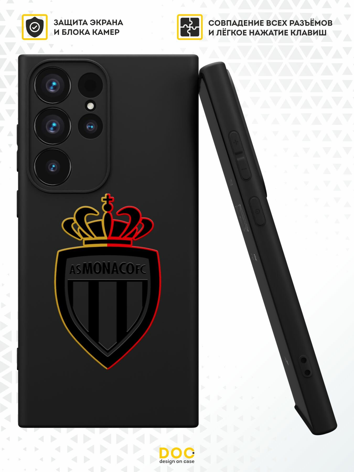 Силиконовый чехол DesignOnCase на Galaxy S23 Ultra, защита камеры, черный, с принтом MONACO FC информация: