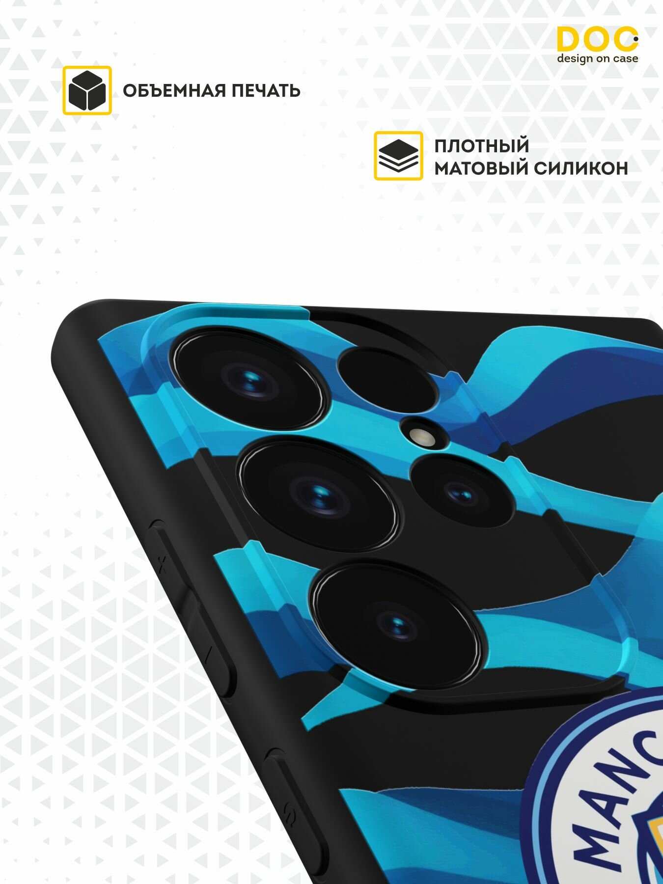 Силиконовый чехол DesignOnCase на Galaxy S23 Ultra, защита камеры, черный, с принтом Manchester city 2 информация: