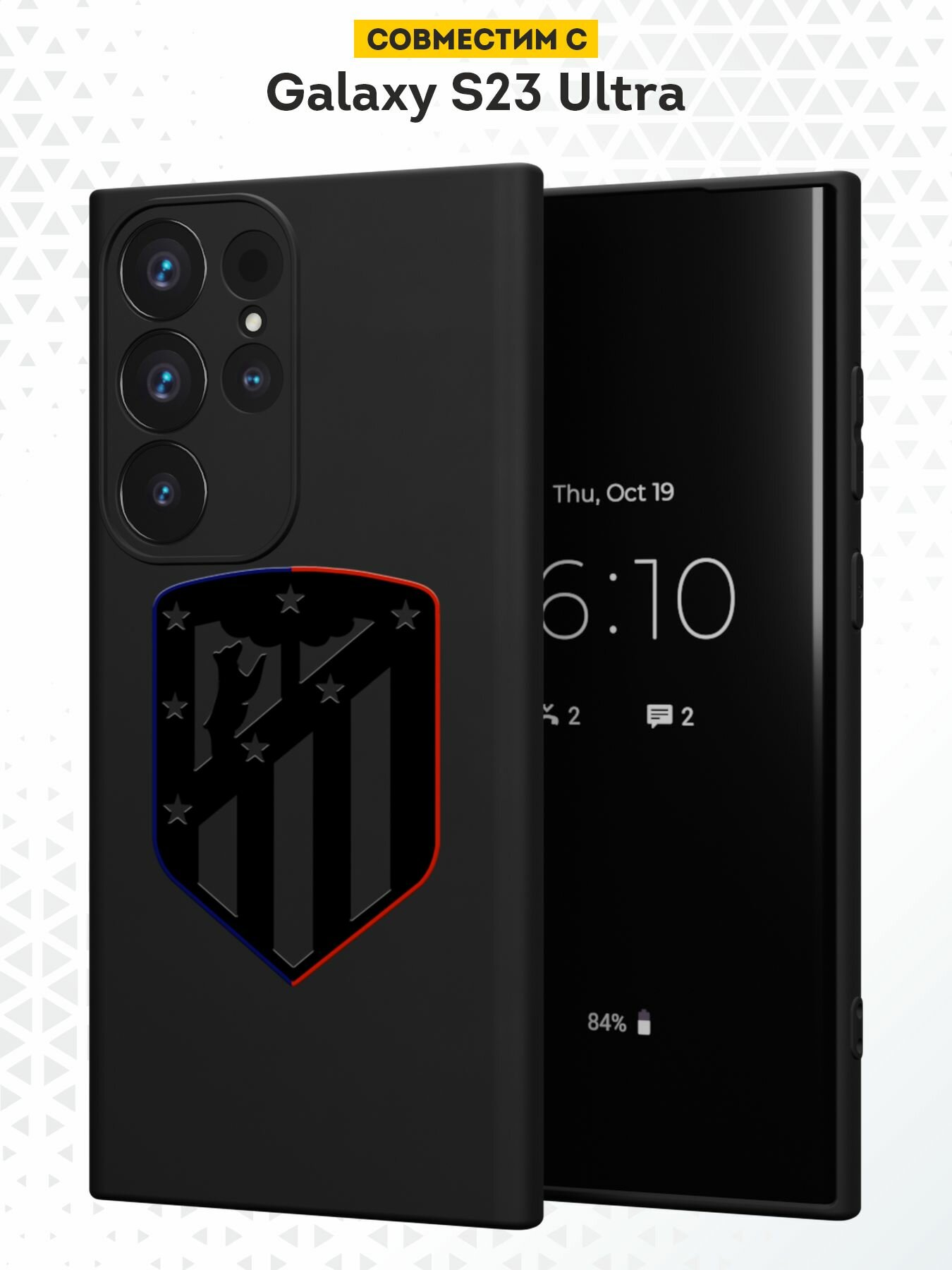 Силиконовый чехол DesignOnCase на Galaxy S23 Ultra, защита камеры, черный, с принтом Атлетико Мадрид информация: