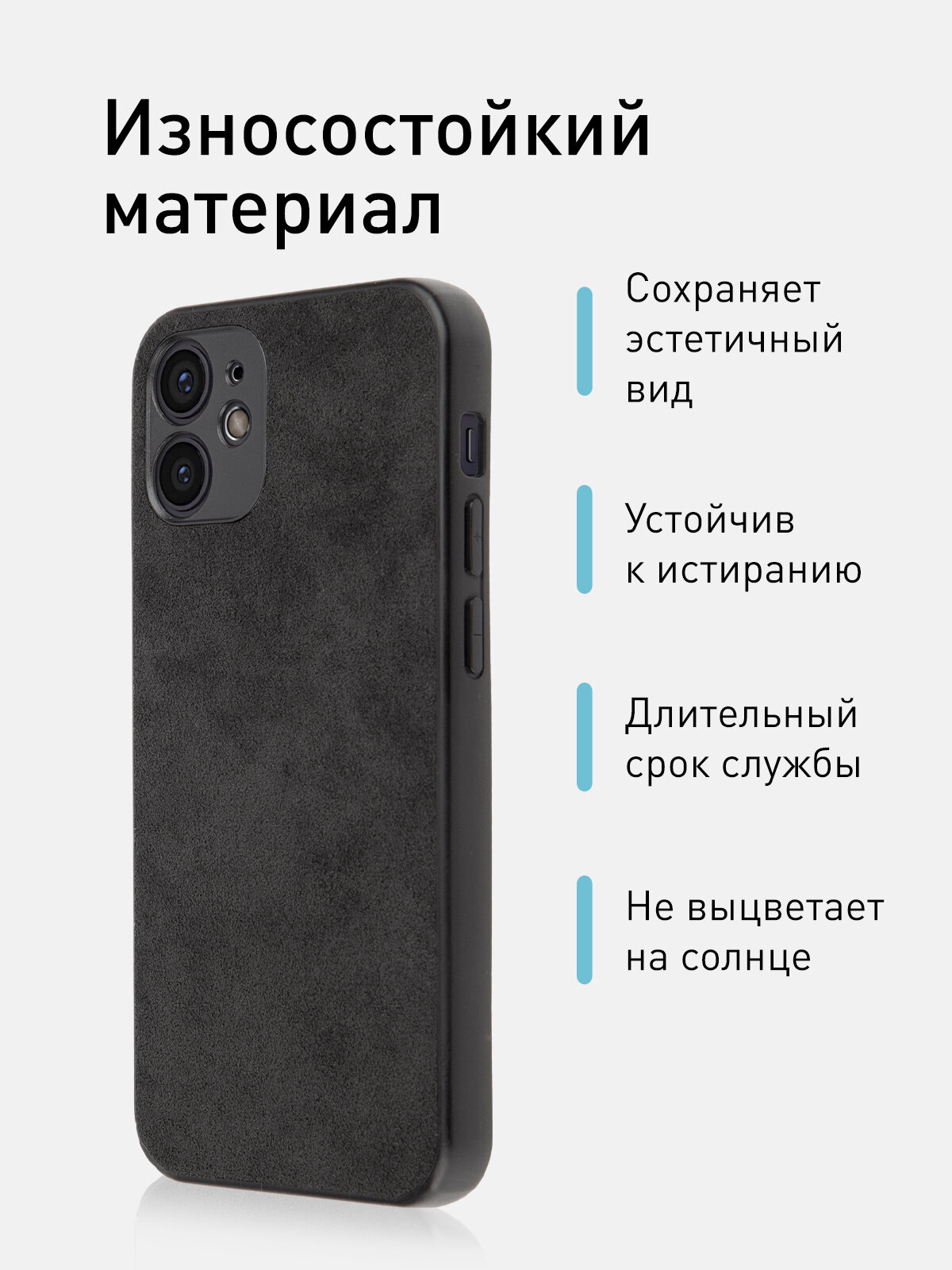 Отзывы на Люксовый замшевый чехол Alcantara на Apple iPhone 12 Mini (Айфон 12 Мини), бренд Rosco, бархатистый, черный
