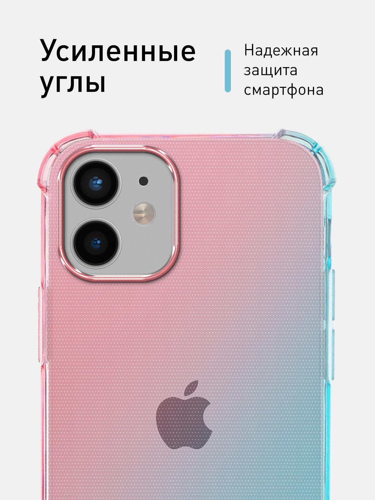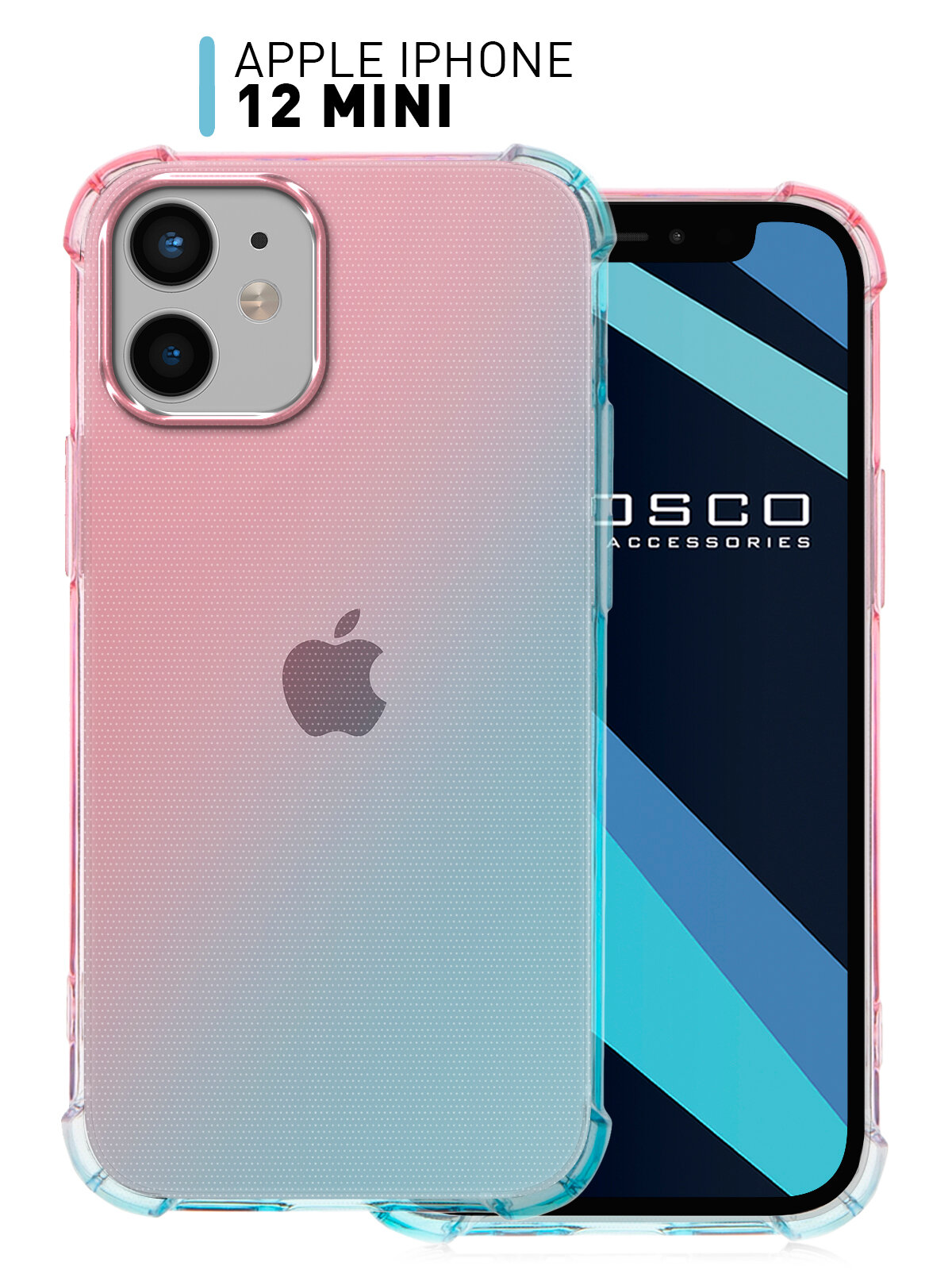 Отзывы на Противоударный силиконовый чехол Rosco на Apple iPhone 12 Mini (Айфон 12 Мини), прозрачный розово-голубой