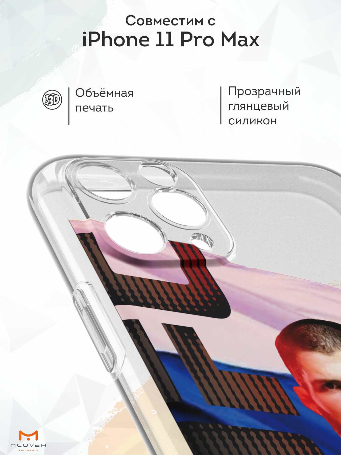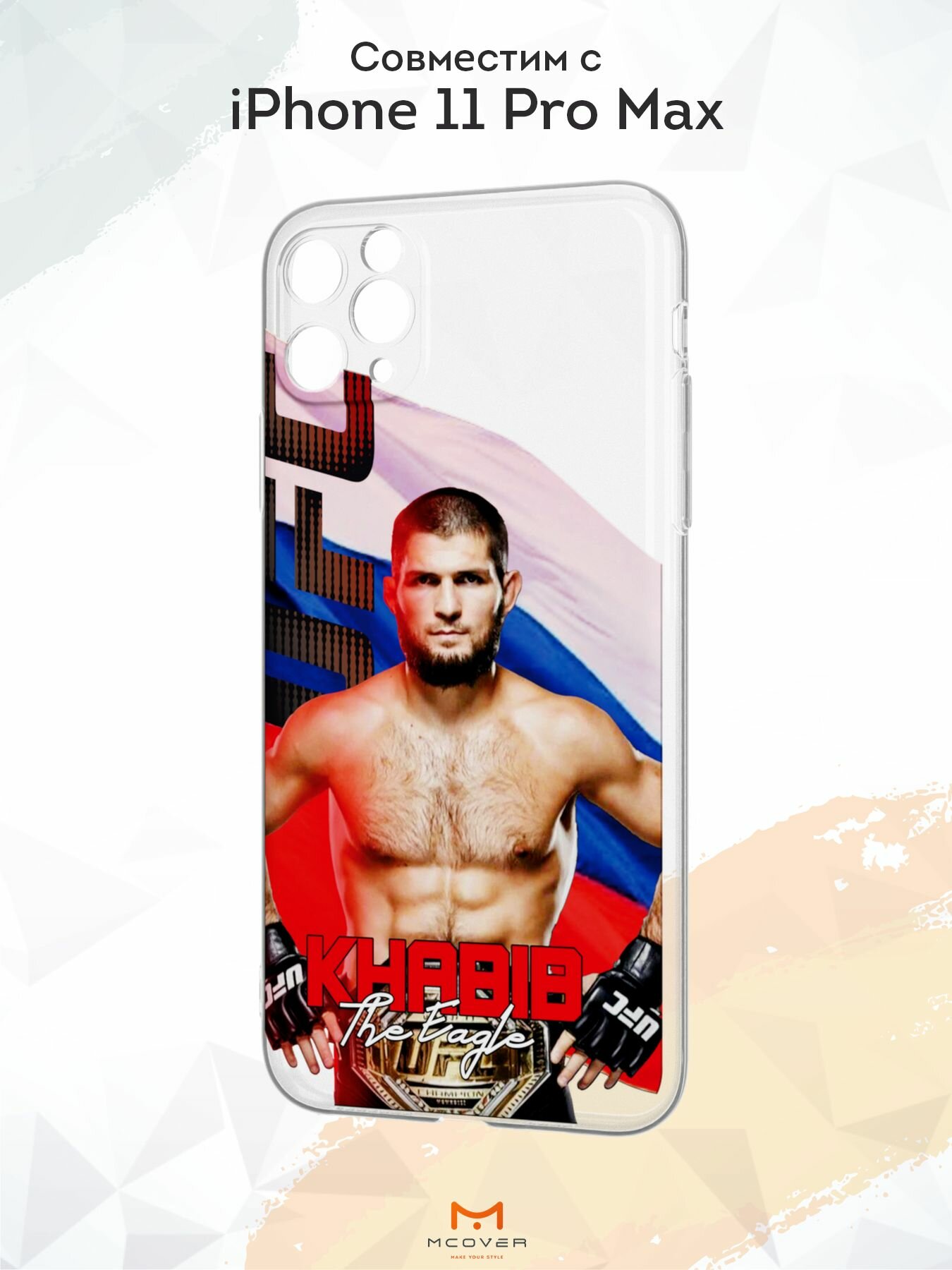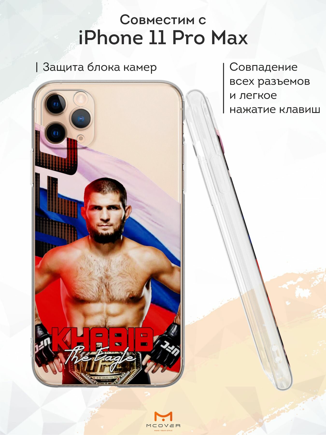 Силиконовый чехол с защитой камеры Mcover на iPhone 11 Pro Max, с принтом Khabib информация: