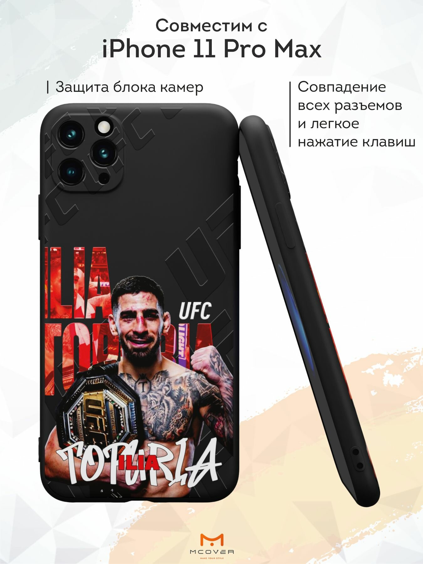 Силиконовый чехол с защитой камеры Mcover на iPhone 11 Pro Max, с принтом UFC Topuria информация: