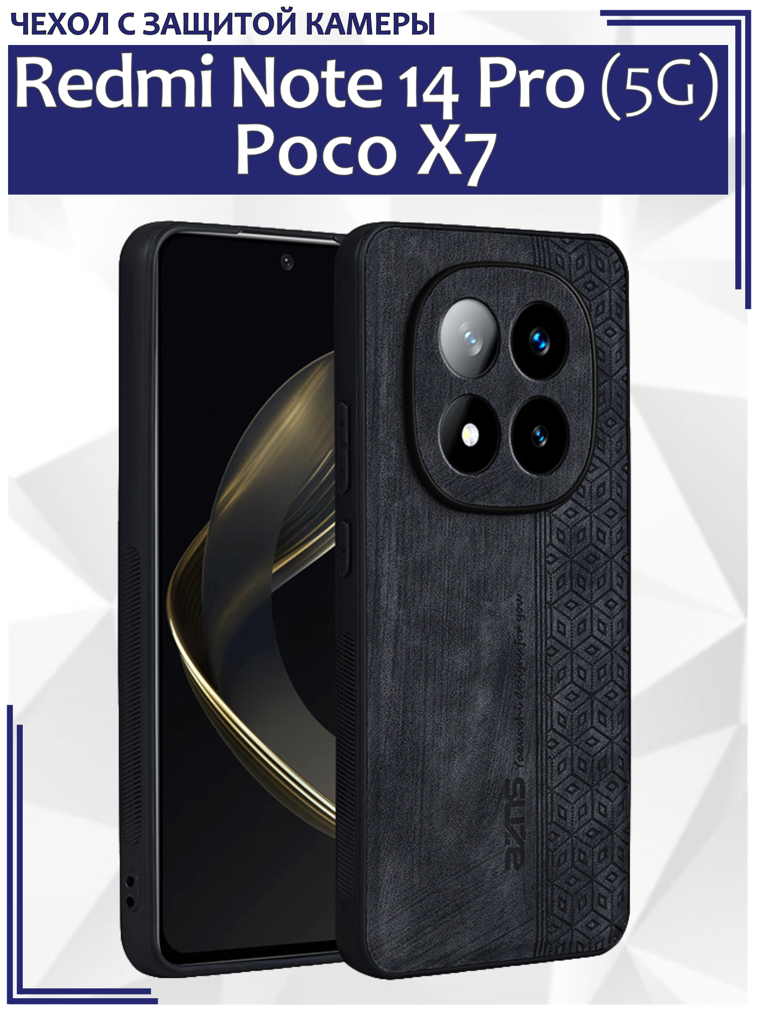 Чехол для Poco X7/ Redmi Note 14 Pro (5G) кожаный с тиснением / Поко Х7 с защитой камеры (черная) информация:
